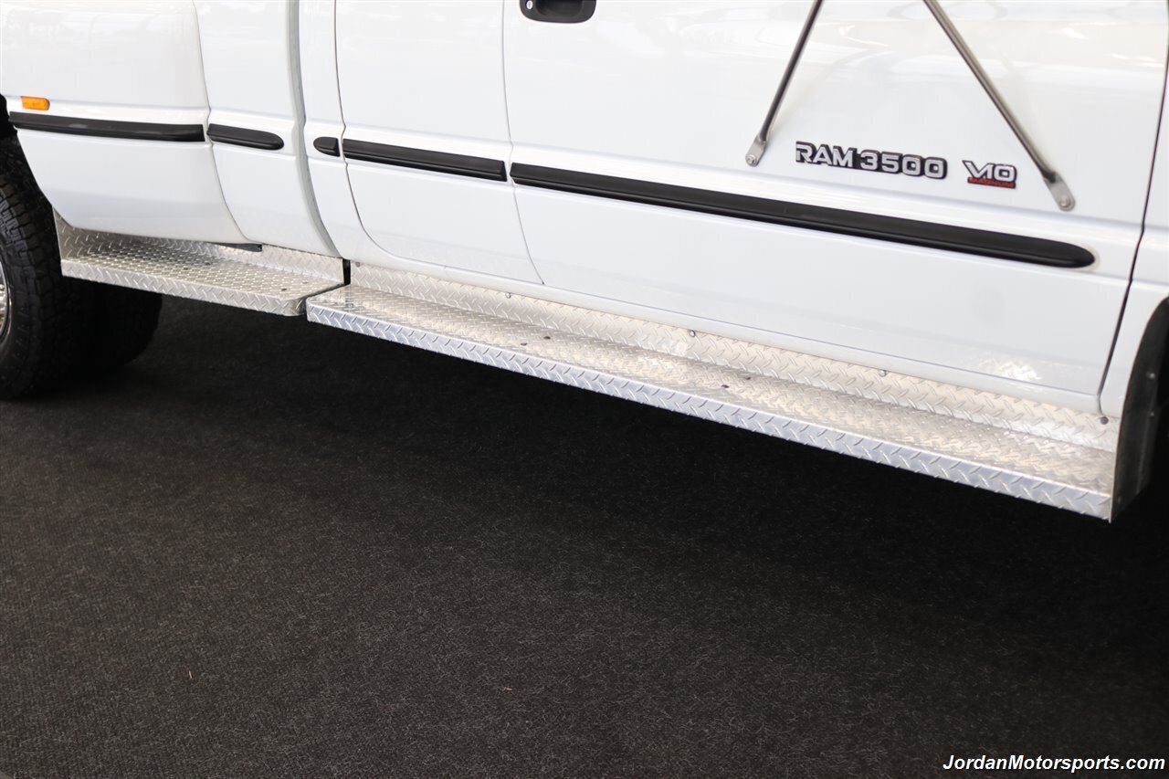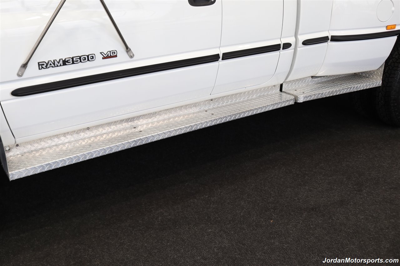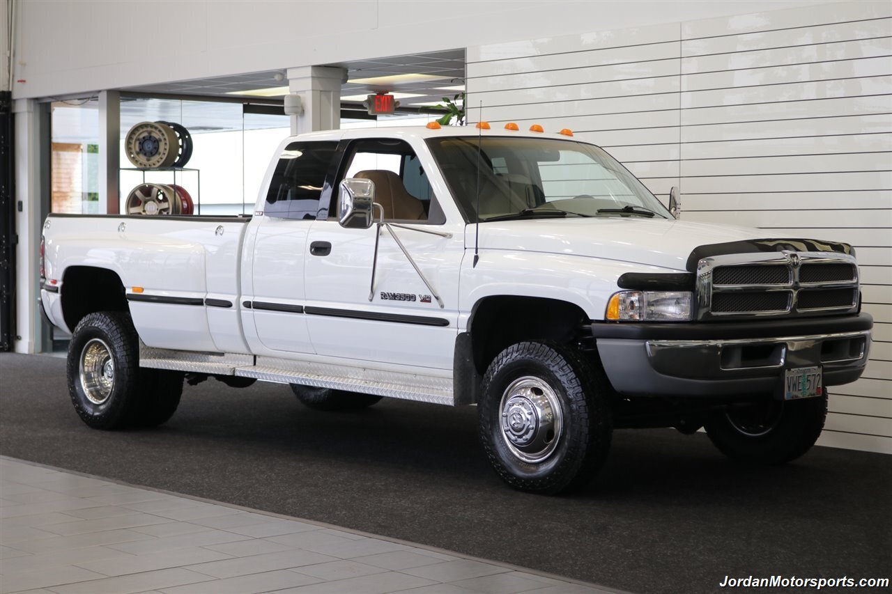 UP FOR GRABS IS AN IMPOSSIBLE TO FIND IN THIS SHAPE AND CONDITION AND SUPER LOW MILES LOCAL OREGON ONE OWNER SINCE NEW CLEAN TITLE AND CARFAX CERTIFIED FRESH TRADE IN 1998 DODGE RAM 3500 EXTENDED CAB LONG BED LARAMIE 4X4 WITH 8.0L V-10 WITH HARD TO FIND 5-SPEED MANUAL TRANSMISSION, LOADED WITH ALL FACTORY OPTIONS FROM NEW INCLUDING 6-PASSENGER SEATING, LEATHER INTERIOR IN EXCELLENT CONDITION, REAR SLIDER, TINTED WINDOWS, TOWING MIRRORS, BED LINER, PREMIUM SOUND WITH FACTORY CD PLAYER, POWER SEAT, ALL POWER OPTIONS, CRUISE CONTROL, FULL LENGTH DIAMOND PLATE RUNNING BOARDS, FRONT BUG SHIELD, BED LINER AND MUCH MORE. NO SIGNS OR RECORDS OF ANY ACCIDENTS OR DAMAGES EVER, PAINT LOOKS AND SHINES AS NEW, NO CLEAR COAT ISSUES OF FADING OR PEELING AT ALL, NO MAJOR DENTS OR SCRATCHES AT ALL IF ANY, LIKE NEW NON-SMOKER INTERIOR FREE OF ANY RIPS OR TEARS OR ANY STAINS, PERFECT IN NEW CONDITION HEADLINER. THE UNDER CARRIAGE OF THIS TRUCK IS 100% RUST AND CORROSION FREE, ZERO MODIFICATIONS TO THE TRUCK IT IS IN 100% STOCK CONDITION BESIDES GOOSENECK. THE DASH IS 100% IN EXCELLENT CONDITION WITH NO CRACKS, NO OIL LEAKS, NO KNOWN PROBLEMS AT ALL. WE JUST HAD A FULL SERVICE DONE ON THIS RAM INCLUDING NEW BATTERIES / NEW REAR BRAKES SHOES & WHEEL CYLINDERS AND BRAKE HARDWARE KIT / BRAKE FLUID FLUSH / FRESH AC CHARGE / COOLANT FLUSH AND MORE. THIS RAM COMES WITH ALL ORIGINAL BOOKS AND MANUALS AND ALL SERVICE RECORDS BACK DATING TO NEW AS WELL. WE ALSO JUST INSTALLED A NEW FULL SET OF 32" FALKEN WILD PEAK AT4W 10-PLY TIRES ALL THE WAY AROUND. THIS IS COLLECTOR QUALITY RAM THAT YOU WOULD THINK IT IS BRAND NEW IF YOU DID NOT KNOW THE BODY STYLE WAS CHANGED, A MANUAL V-10 WITH ONLY 29K ACTUAL MILES AND 100% RUST FREE MAKES THIS RAM THE ONLY ONE IN THE COUNTRY SO HURRY UP AND BE THE LUCKY OWNER OF THIS RARE FIND.
