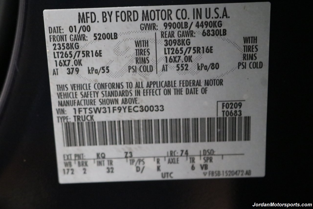 UP FOR GRABS IS A SUPER HARD TO FIND IN THIS SHAPE AND CONDITION AND 100% RUST & CORROSION FREE LOCAL FRESH TRADE IN 2 OWNER SINCE NEW CLEAN TITLE AND CARFAX CERTIFIED 2000 FORD F-350 CREW CAB LONG BED XLT SUPER DUTY WITH TURBO POWER STROKE 7.3L AND IMPOSSIBLE TO FIND 6-SPEED MANUAL TRANSMISSION, 4X4, FULLY LOADED WITH ALL OPTIONS INCLUDING 6-PASSENGER SEATING, REAR SLIDER, OFF ROAD PKG, RUNNING BOARDS, TINTED WINDOWS, SPRAY IN BED LINER, FACTORY 2-TONE PAINT, BILLET GRILL, EXTENDABLE TOWING MIRRORS, TRAILER BRAKES, CB RADIO AND MUCH MORE. NO SIGNS OR RECORDS OF ANY ACCIDENTS OR DAMAGES EVER, NO MAJOR DENTS OR SCRATCHES AT ALL, LIKE NEW INTERIOR FREE OF ANY RIPS OR TEARS OR ANY BROKEN PLASTICS, THE UNDER CARRIAGE OF THIS F-350 IS 100% RUST & CORROSION FREE AND SHOWS NO SIGNS OF EVER BEING DRIVEN IN MUD OR SNOW OR OFF ROAD AT ALL. THIS TRUCK SPENT ITS LIFE IN STOCK CONDITION AND HAS NEVER BEEN MODIFIED OR TUNED AT ALL, WE JUST DID A NEW 2.5" BILSTEIN LEVEL LIFT ON IT WITH ALL NEW BILSTEIN 5100 SERIES SHOCKS ALL THE WAY AROUND AND A NEW ALIGNMENT, WE UPGRADED THE TIRES TO A NEW SET OF 34" TOYO OPEN COUNTRY A/T III 10-PLY TIRES W/ NEW 17" RACE LINE POLISHED WHEELS, WE ALSO JUST DID A FULL MAJOR SERVICE INCLUDING ALL NEW FRONT & REAR BRAKE CALIPERS / ROTORS / BRAKE PADS / AC SERVICE WITH NEW RECHARGE / OIL CHANGE & FILTER / NEW AIR FILTER / 2 NEW FRONT MANUAL LOCKING HUBS / ALL NEW DOOR LOCK ACTUATORS / NEW WIPER BLADES / NEW FRONT SWAY BAR LINKS / NEW BELTS / COOLANT FLUSH W/ NEW RESERVOIR / NEW UPPER & LOWER RADIATOR HOSES W/ CLAMPS / BRAKE FLUID FLUSH AND MORE. THIS F-350 LOOKS & DRIVES GREAT WITH A SUPER CLEAN UNDER CARRIAGE AND A VERY HARD TO FIND 6-SPEED MANUAL TRANSMISSION SO HURRY AND BE THE LUCKY OWNER OF THIS RARE FIND.