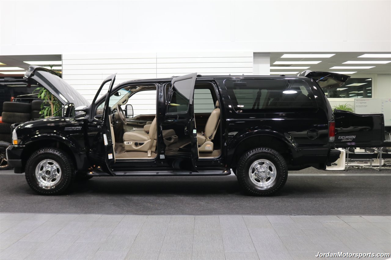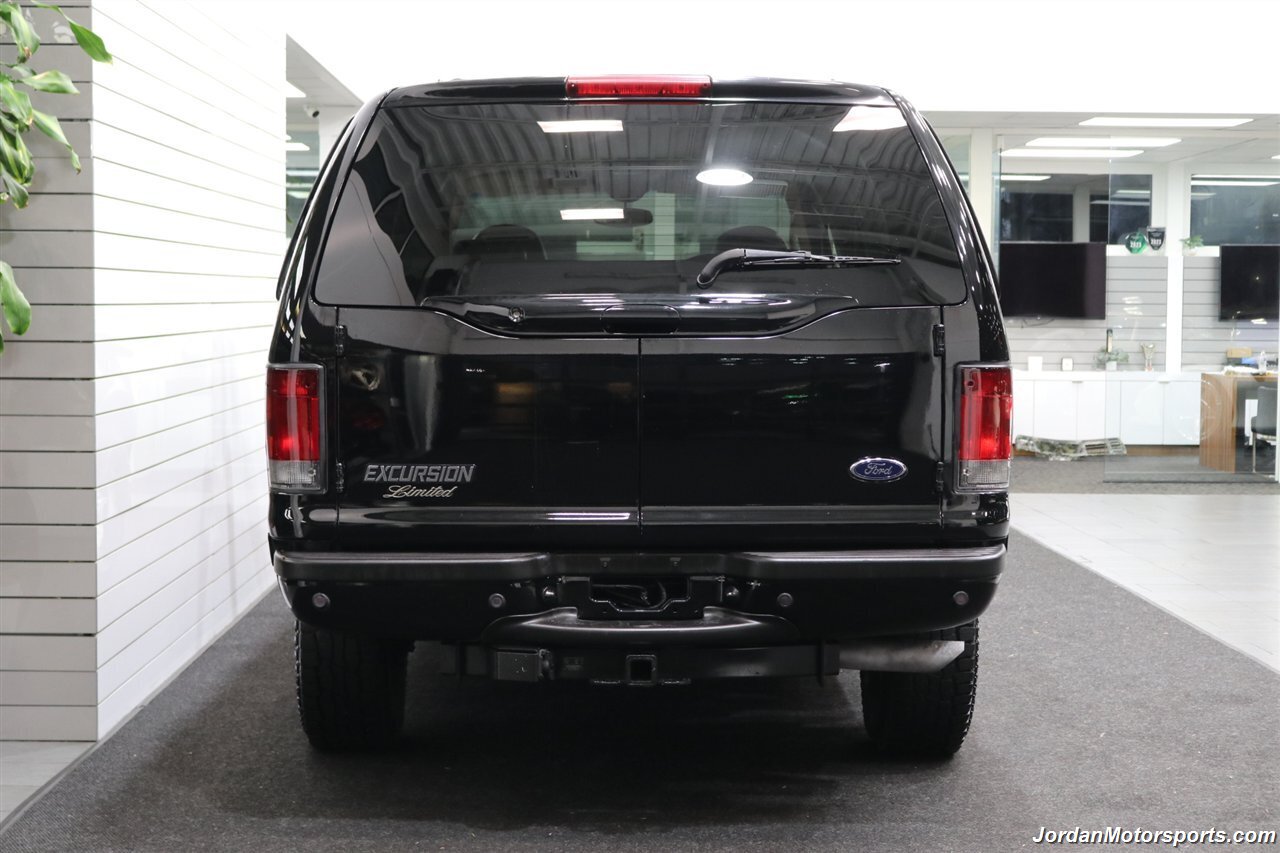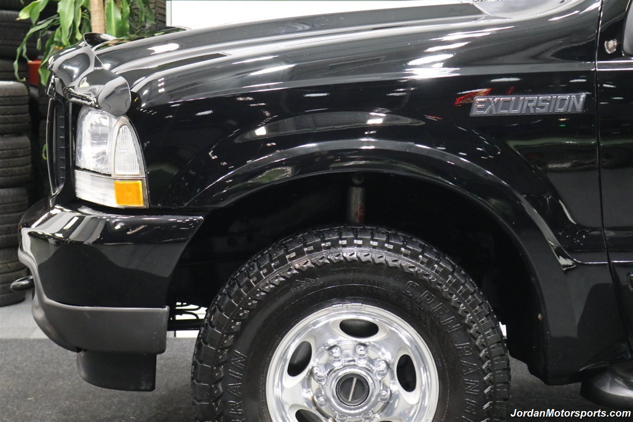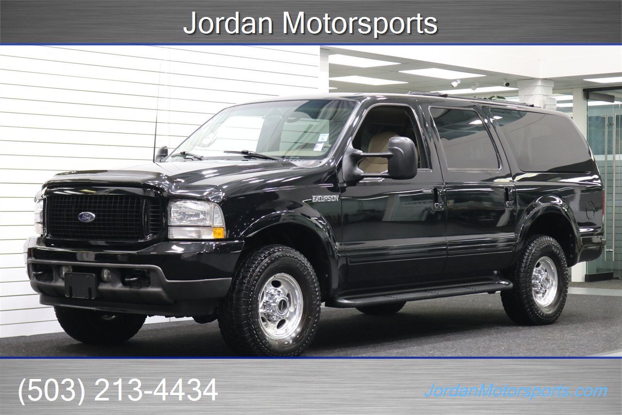 UP FOR GRABS IS A SUPER HARD TO FIND IN THIS SHAPE AND CONDITION AND 100% RUST & CORROSION FREE CONDITION 2001 FORD EXCURSION LIMITED 4X4 7.3L TURBO POWERSTROKE DIESEL WITH 171K MILES, SAME LOCAL OWNER SINCE 2003, LIKE NEW IN AND OUT, NO SIGNS OR RECORDS OF ANY ACCIDENTS OR DAMAGES EVER, NO MAJOR DENTS OR SCRATCHES AT ALL, LIKE NEW INTERIOR FREE OF ANY RIPS OR TEARS OR ANY BROKEN PLASTICS OR STAINS AT ALL, NON-SMOKER PREVIOUS OWNER, ALWAYS GARAGED, ALWAYS SERVICED ON TIME, 100% STOCK CONDITION, NEVER BEEN DRIVEN IN MUD OR SNOW AT ALL. THIS IS A LIMITED MODEL, COMES WITH FULL LEATHER INTERIOR, 8-PASSENGER SEATING, REAR AIR, TINTED WINDOWS, RUNNING BOARDS, ROOF RACK, FOG LIGHTS, FACTORY ALLOY WHEELS WITH OVER 95% TREAD ON A SET OF OPEN RANGE A/T 10-PLY TIRES ALL THE WAY AROUND, EXTENDABLE TOWING MIRRORS, REAR PARKING SENSORS, POWER REAR VENT WINDOWS AND MORE. THIS EXCURSION IS A SUPER RARE FIND IN THIS CONDITION AND ESPECIALLY WITH A SUPER RUST FREE UNDER CARRIAGE LIKE THIS ONE, IT HAS BEEN ALWAYS GARAGED AND WELL CARED FOR, COMES WITH 2 KEYS, ALL WEATHER MATS AND REAR WEATHERTECH CARGO MAT, WE ALSO JUST DID A FULL SERVICE ON THIS EXCURSION INCLUDING NEW REAR TAILGATE DOOR LOCK ACTUATOR / FRESH AC RECHARGE / COOLANT FLUSH / NEW FRONT BRAKES AND ROTORS / BRAKE FLUID FLUSH / NEW DOOR LOCK ACTUATORS, ALSO THE PREVIOUS OWNER JUST REPLACED THE BATTERIES 11 MONTHS AGO, NEW BALL JOINTS AND DRAG LINK BAR, AND DID A TRANSMISSION SERVICE ALONG WITH DIFFERENTIAL FLUIDS. THIS EXCURSION STANDS TALL, LOOKS AND DRIVES LIKE IT HAS 30K MILES AND THE UNDER CARRIAGE LOOKS LIKE ITS NEW SO HURRY AND BE THE LUCKY OWNER OF THIS GREAT 7.3L BLACK LIMITED SURVIVOR.