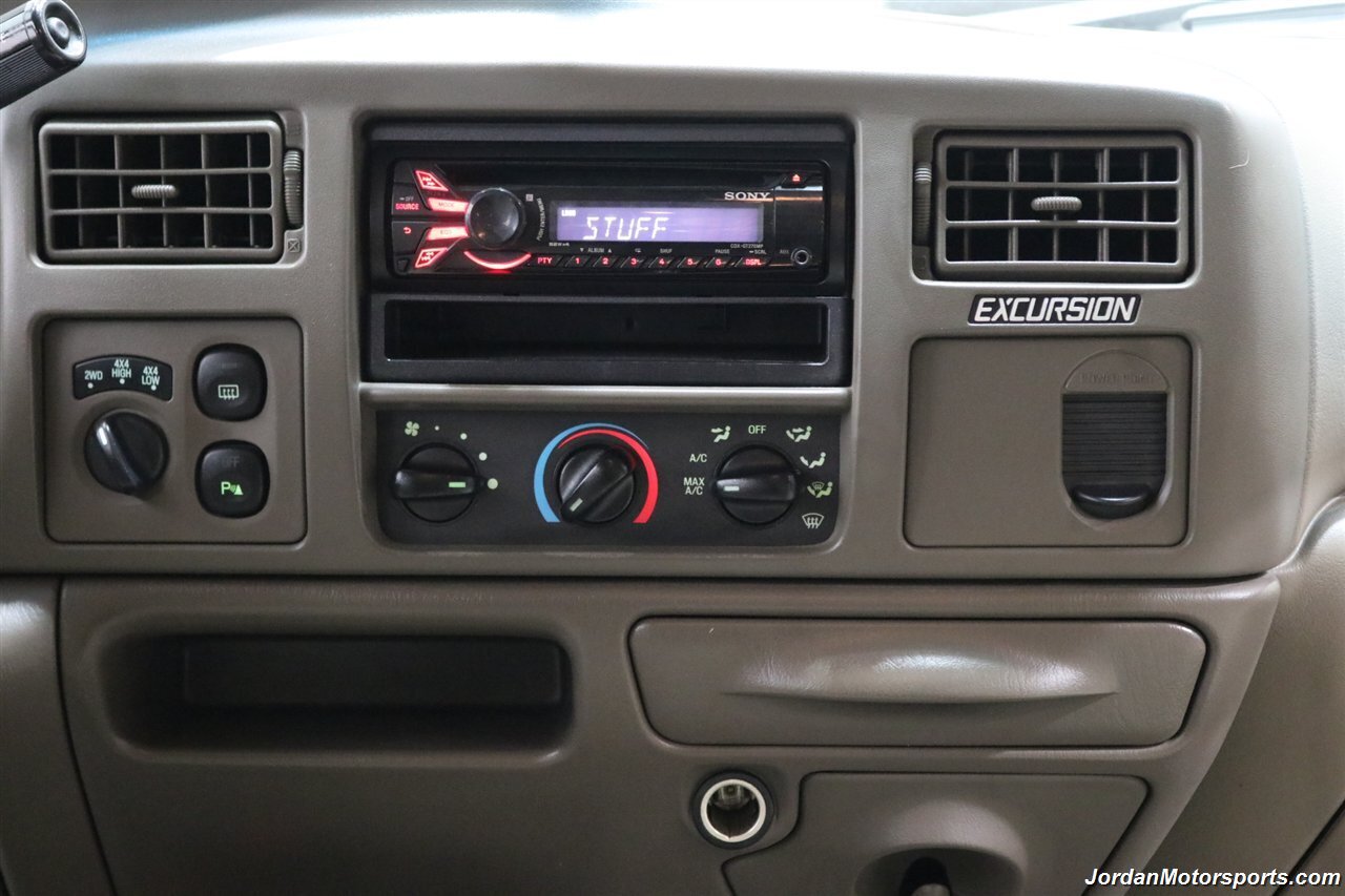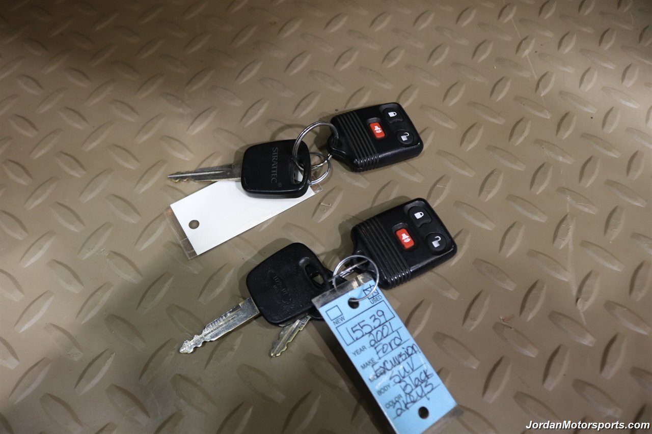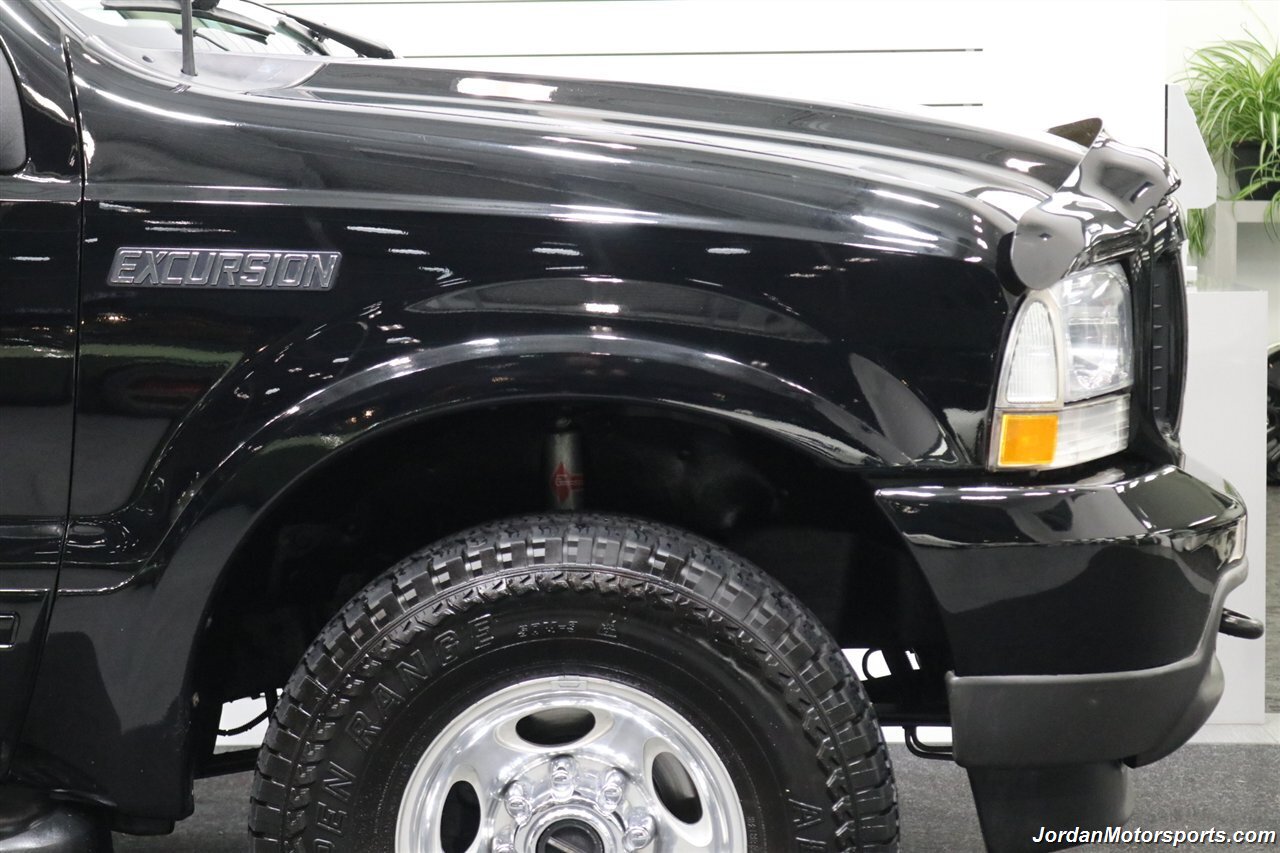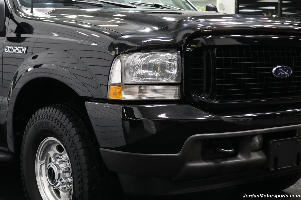 UP FOR GRABS IS A SUPER HARD TO FIND IN THIS SHAPE AND CONDITION AND 100% RUST & CORROSION FREE CONDITION 2001 FORD EXCURSION LIMITED 4X4 7.3L TURBO POWERSTROKE DIESEL WITH 171K MILES, SAME LOCAL OWNER SINCE 2003, LIKE NEW IN AND OUT, NO SIGNS OR RECORDS OF ANY ACCIDENTS OR DAMAGES EVER, NO MAJOR DENTS OR SCRATCHES AT ALL, LIKE NEW INTERIOR FREE OF ANY RIPS OR TEARS OR ANY BROKEN PLASTICS OR STAINS AT ALL, NON-SMOKER PREVIOUS OWNER, ALWAYS GARAGED, ALWAYS SERVICED ON TIME, 100% STOCK CONDITION, NEVER BEEN DRIVEN IN MUD OR SNOW AT ALL. THIS IS A LIMITED MODEL, COMES WITH FULL LEATHER INTERIOR, 8-PASSENGER SEATING, REAR AIR, TINTED WINDOWS, RUNNING BOARDS, ROOF RACK, FOG LIGHTS, FACTORY ALLOY WHEELS WITH OVER 95% TREAD ON A SET OF OPEN RANGE A/T 10-PLY TIRES ALL THE WAY AROUND, EXTENDABLE TOWING MIRRORS, REAR PARKING SENSORS, POWER REAR VENT WINDOWS AND MORE. THIS EXCURSION IS A SUPER RARE FIND IN THIS CONDITION AND ESPECIALLY WITH A SUPER RUST FREE UNDER CARRIAGE LIKE THIS ONE, IT HAS BEEN ALWAYS GARAGED AND WELL CARED FOR, COMES WITH 2 KEYS, ALL WEATHER MATS AND REAR WEATHERTECH CARGO MAT, WE ALSO JUST DID A FULL SERVICE ON THIS EXCURSION INCLUDING NEW REAR TAILGATE DOOR LOCK ACTUATOR / FRESH AC RECHARGE / COOLANT FLUSH / NEW FRONT BRAKES AND ROTORS / BRAKE FLUID FLUSH / NEW DOOR LOCK ACTUATORS, ALSO THE PREVIOUS OWNER JUST REPLACED THE BATTERIES 11 MONTHS AGO, NEW BALL JOINTS AND DRAG LINK BAR, AND DID A TRANSMISSION SERVICE ALONG WITH DIFFERENTIAL FLUIDS. THIS EXCURSION STANDS TALL, LOOKS AND DRIVES LIKE IT HAS 30K MILES AND THE UNDER CARRIAGE LOOKS LIKE ITS NEW SO HURRY AND BE THE LUCKY OWNER OF THIS GREAT 7.3L BLACK LIMITED SURVIVOR.