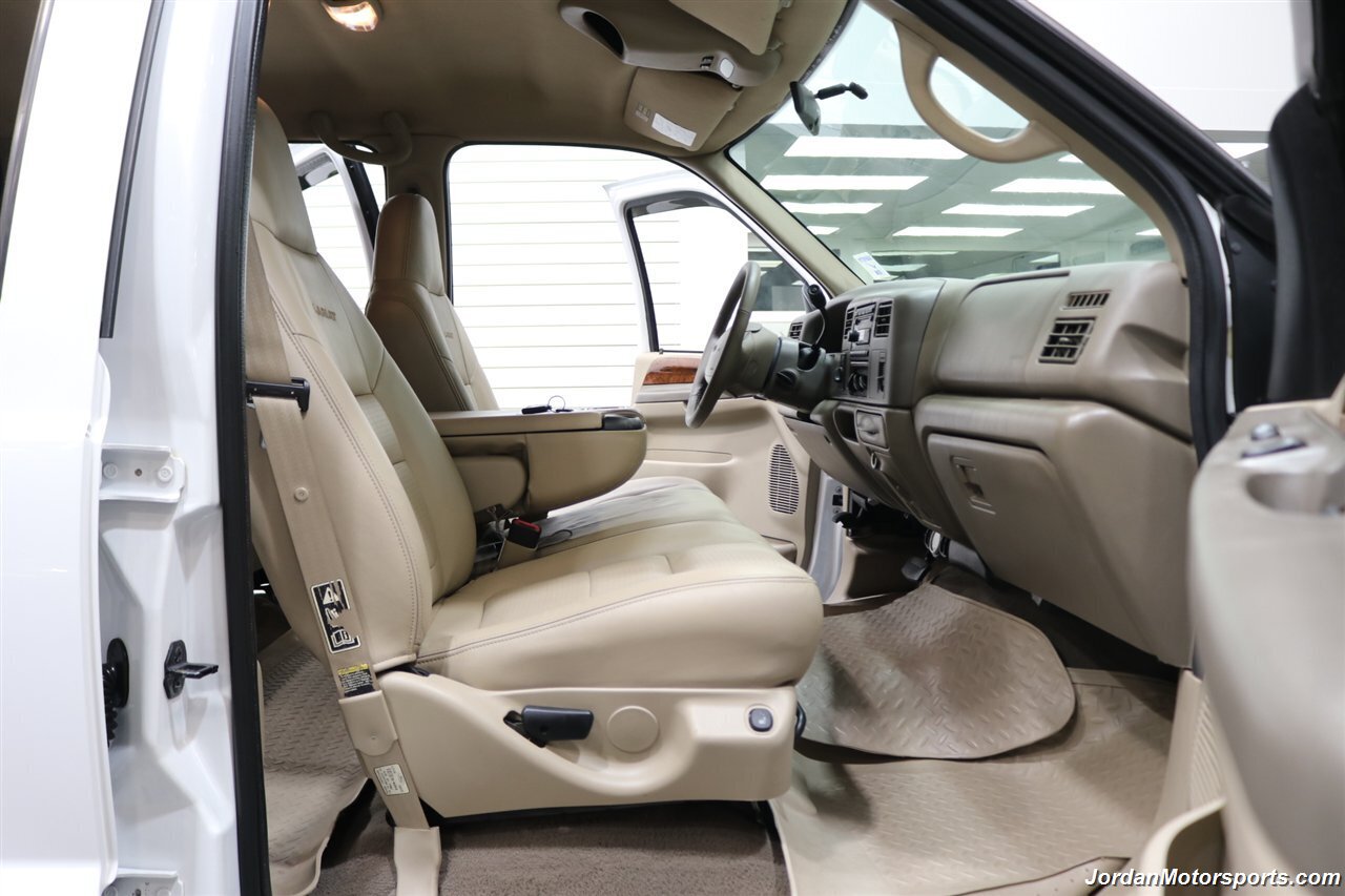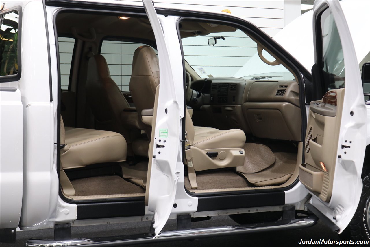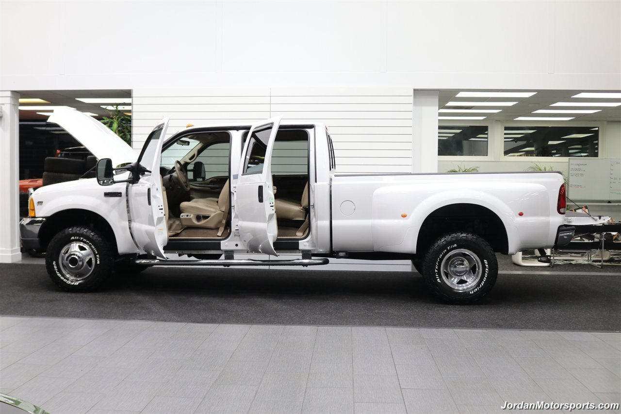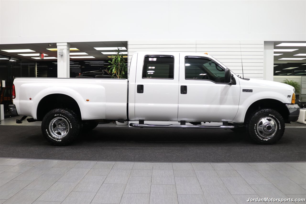 UP FOR GRABS IS A SUPER HARD TO FIND IN THIS SHAPE AND CONDITION AND SUPER LOW MILEAGE 2-CALIFORNIA OWNERS SINCE NEW CLEAN TITLE AND CARFAX CERTIFIED FRESH TRADE IN 2001 FORD F-350 CREW CAB LONG BED DUALLY LARIAT 4X4 TRITON V-10 WITH ONLY 55K ACTUAL MILES, LIKE NEW IN AND OUT, NO SIGNS OR RECORDS OF ANY ACCIDENTS OR DAMAGES EVER, NO MAJOR DENTS OR SCRATCHES AT ALL IF ANY, LIKE NEW INTERIOR FREE OF ANY RIPS OR TEARS OR ANY BROKEN PLASTICS. THE UNDER CARRIAGE OF THIS DUALLY IS IN NEW CONDITION AND IS 100% RUST & CORROSION FREE, NO SIGNS OF EVER BEING DRIVEN IN MUD OR SNOW OR OFF ROAD, NO MODIFICATIONS AT ALL MECHANICALLY OR TO THE SUSPENSION, UPGRADED REAR AIR BAGS WITH ON BOARD AIR COMPRESSOR. THIS F-350 IS A LARIAT MODEL, LOADED WITH ALL OPTIONS INCLUDING 6-PASSENGER SEATING, POWER SEAT, HEATED SEATS, REAR SLIDER, TOWING MIRRORS, RUNNING BOARDS, TINTED WINDOWS, SPRAY IN BED LINER AND MORE. THE LEATHER LOOKS AND FEELS LIKE NEW SAME AS CARPET, THE TRUCK HAS ALL WEATHER MATS SINCE NEW, THE BED SHOWS NO DAMAGES AT ALL, THE PAINT IS SHINY AND NO CLEAR COAT FADING OR PEELING AT ALL AS WELL. WE JUST DID A FULL SERVICE ON THIS TRUCK INCLUDING OIL CHANGE & FILTER / NEW AIR FILTER / NEW WIPER BLADES / NEW SERPENTINE BELT / NEW FRONT BRAKES AND ROTORS / BRAKE FLUID FLUSH / COOLANT FLUSH / AC RECHARGE / NEW DOOR LOCK ACTUATORS AND MORE. WE ALSO UPGRADED THE FRONT SUSPENSION WITH DUAL STEERING STABILIZERS, WE INSTALLED A NEW SET OF BF GOODRICH KO3 10-PLY TIRES ALL THE WAY AROUND. THE PREVIOUS OWNER JUST REPLACED THE REAR BRAKES & ROTORS 6K MILES AGO AS WELL.