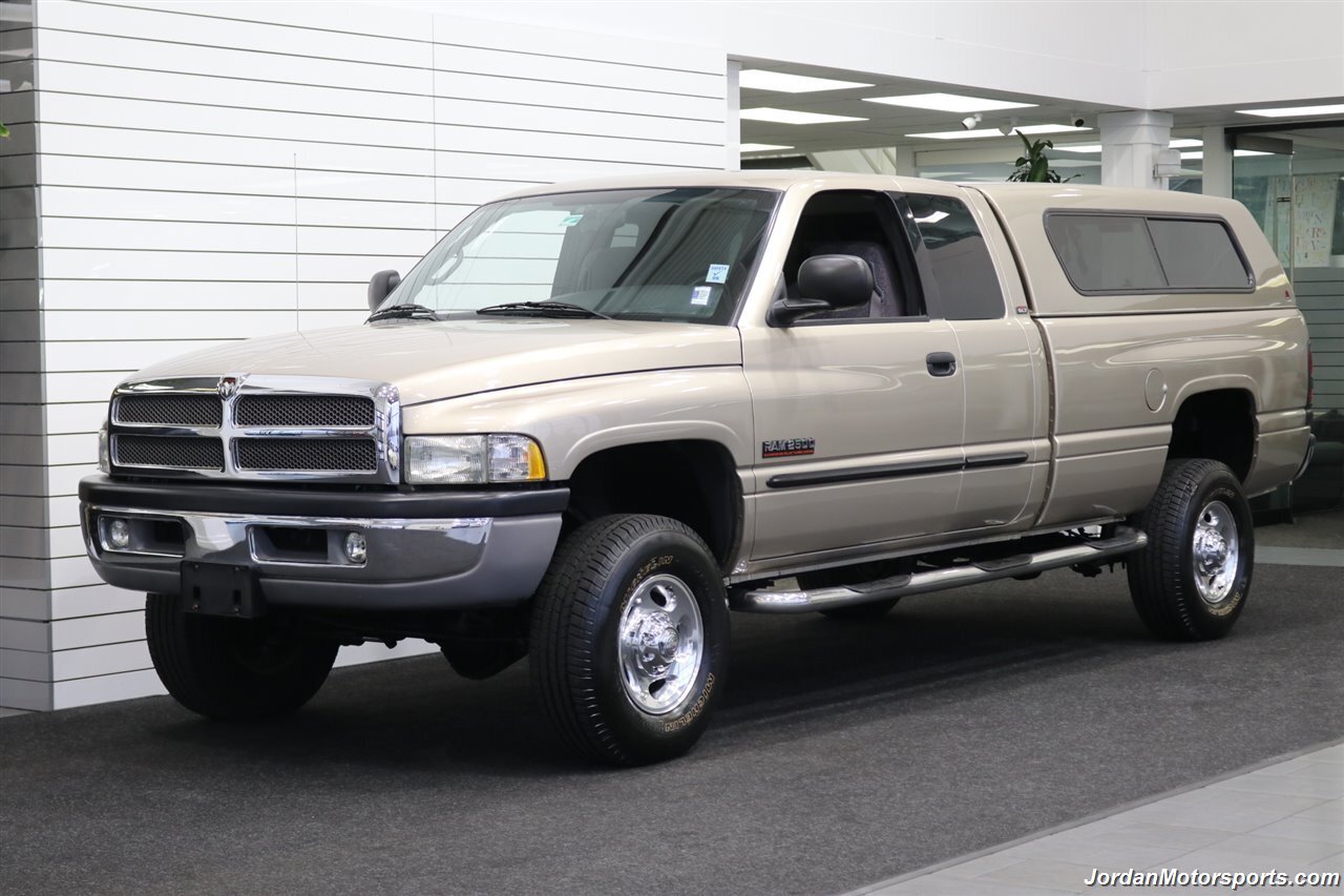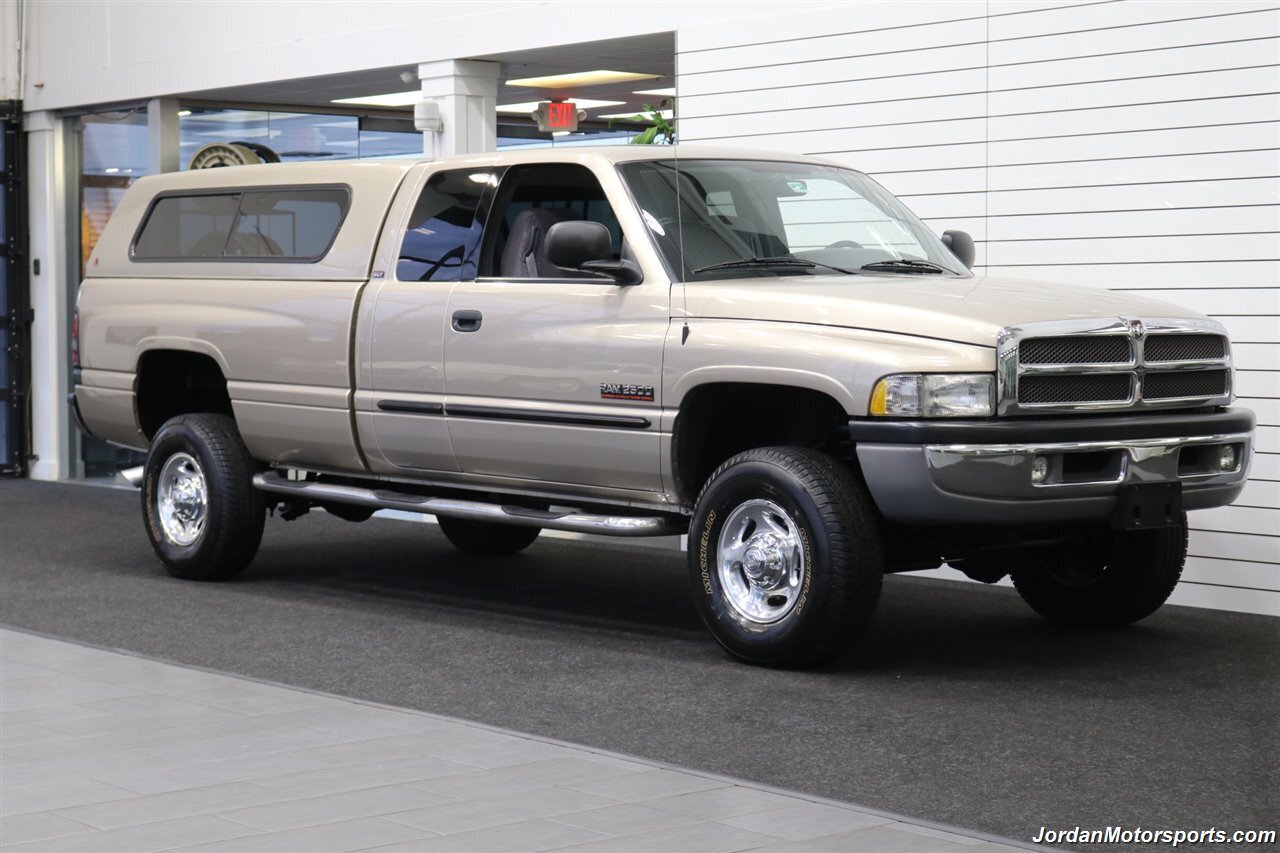 UP FOR GRABS IS A SUPER HARD TO FIND IN THIS SHAPE AND CONDITION AND SUPER LOW MILES CLEAN TITLE AND CARFAX CERTIFIED 2-OWNER SINCE NEW FRESH TRADE IN 2002 DODGE RAM 2500 EXTENDED CAB LONG BED SLT 4X4 WITH 96K ACTUAL MILES, NO SIGNS OR RECORDS OF ANY ACCIDENTS EVER, NO MAJOR DENTS OR SCRATCHES AT ALL, LIKE NEW INTERIOR FREE OF ANY RIPS OR TEARS OR ANY BROKEN PLASTICS OR ANY STAINS IN CARPET OR SEATS. THE UNDER CARRIAGE OF THIS RAM IS 100% RUST & CORROSION FREE, NEVER BEEN DRIVEN IN MUD OR SNOW AT ALL, NEVER BEEN MODIFIED OR ABUSED. THIS RAM COMES WITH PAINT MATCHED LEER CANOPY, SPRAY IN BODY COLOR MATCH LINEX BED LINER, REAR SLIDER, 6-PASSENGER SEATING, TINTED WINDOWS, FRONT FOG LIGHTS, FULL LENGTH RUNNING BOARDS, HEATED MIRRORS, TRAILER BRAKES, ALL POWER OPTIONS AND MUCH MORE. THIS RAM HAS ALWAYS BEEN GARAGED, THE PAINT SHOWS AS NEW, THE INTERIOR IS IN EXCELLENT CONDITION, AND MECHANICALLY IT IS AS GOOD AS IT GETS, WE JUST DID A FULL FRESH SERVICE INCLUDING OIL CHANGE & FILTER / NEW AIR FILTER / NEW WIPER BLADES / NEW SERPENTINE BELT W/TENSIONER / NEW AC COMPRESSOR / FRESH AC CHARGE / NEW FRONT BRAKE PADS & ROTORS & CALIPERS / BRAKE FLUID FLUSH / NEW POWER SEAT MOTORS AND MORE. THE TRUCK COMES WITH NEWER BATTERIES AND ALMOST BRAND NEW MICHELIN DEFENDER LTX 10-PLY TIRES , COOLANT FLUSH AND TRANSMISSION SERVICE. THIS RAM COMES WITH ALL ORIGINAL KEYS AND SERVICE RECORDS AS WELL.