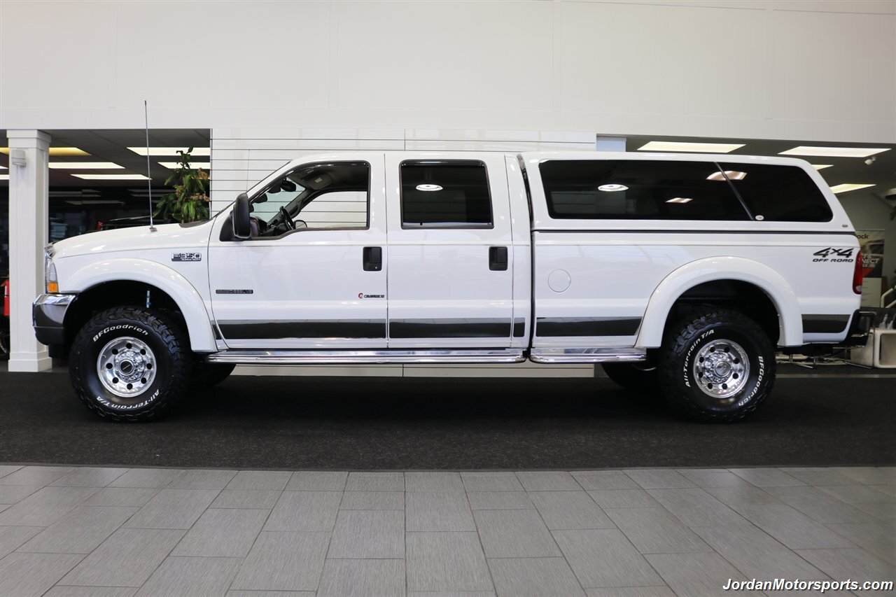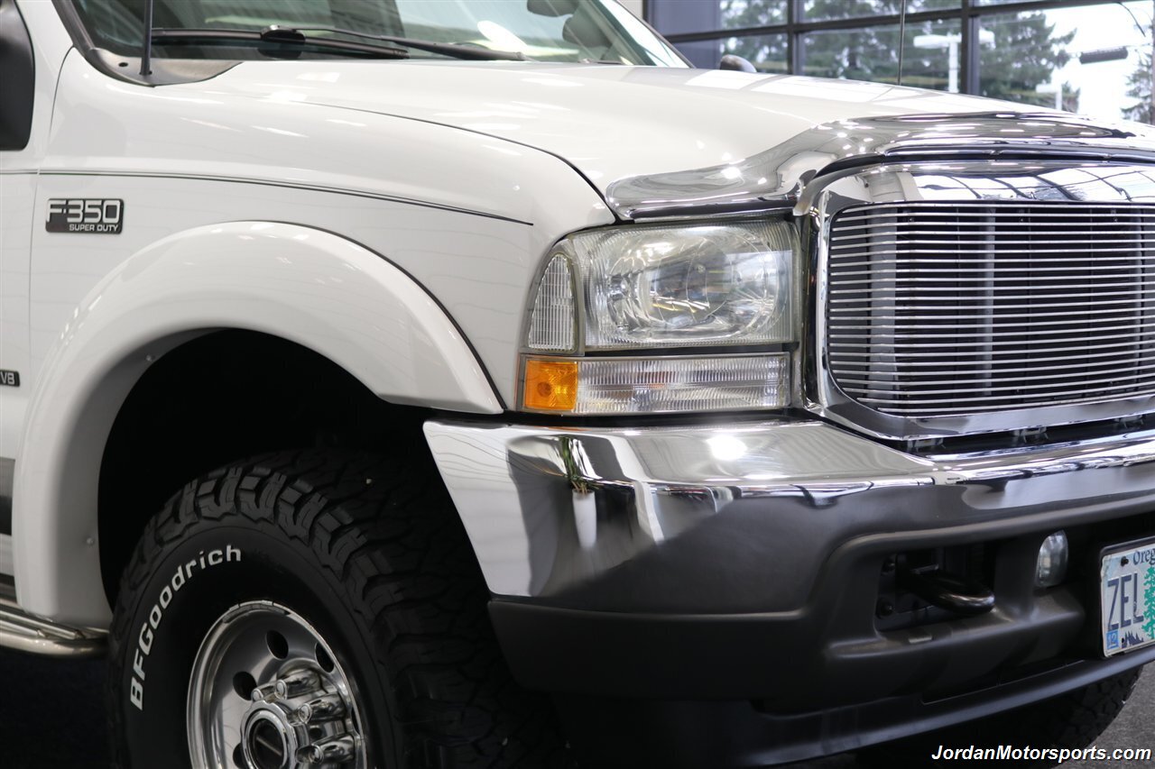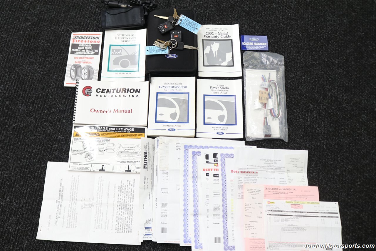 UP FOR GRABS IS A SUPER HARD TO FIND IN THIS SHAPE AND CONDITION AND CENTURION BUILD SPEC LOCAL OREGON SINCE NEW ONE OWNER CLEAN TITLE AND CARFAX CERTIFIED 2002 FORD F-350 CREW CAB LONG BED LARIAT WITH THE UPGRADED CENTURION PACKAGE, LOADED WITH EVERY POSSIBLE OPTION INCLUDING UPGRADED LEATHER INTERIOR, POWER REAR SLIDER, PAINT MATCHED FENDER FLARES, FULL LENGTH RUNNING BOARDS, TOWING MIRRORS, TRAILER BRAKES, CUSTOM MIDDLE SEAT WITH BUILT IN STORAGE, PAINT MATCHED INSULATED CANOPY, SPRAY IN BED LINER, ALLOYS, UPGRADED REAR BUMPER, UNIDEN CB RADIO, UPGRADED BILLET GRILL, BUG SHIELD AND MUCH MORE. NO SIGNS OR RECORDS OF ANY ACCIDENTS OR DAMAGES EVER, NO MAJOR DENTS OR SCRATCHES AT ALL, LIKE NEW INTERIOR WITH NO RIPS OR TEARS OR ANY CRACKS OR STAINS AT ALL. THE EXTERIOR PAINT SHOWS LIKE NEW WITH ZERO CLEAR COAT OR PAINT ISSUES AT ALL, ALWAYS GARAGED IN A CLIMATE CONTROLLED SHOP, UPGRADED PILLAR PODS, UPGRADED EXHAUST TURBO BACK AND MUCH MORE. WE JUST DID A NEW 2.75" LEVELING KIT WITH ALL NEW BILSTEIN 5100 SERIES SHOCKS ALL THE WAY AROUND, WE ALSO UPGRADED THE TIRES TO NEW SET OF 35" BF GOODRICH KO3 10-PLY TIRES ALL THE WAY AROUND, AND WE JUST DID A FULL SERVICE ON IT INCLUDING NEW AIR FILTER / NEW DOOR LOCK ACTUATORS / COOLANT FLUSH / AC RECHARGE / NEW BRAKE LIGHT BULB / NEW ALIGNMENT AND MORE. THIS F-350 SHOWS NO SIGNS OF EVER BEING DRIVEN IN MUD OR SNOW AT ALL, THE UNDER CARRIAGE IS 100% RUST & CORROSION FREE, ALSO NO SIGNS OF ANY OIL LEAKS AT ALL, RUNS AND DRIVES AS DESIGNED WITH EVERYTHING WORKING AS IT SHOULD. THIS CENTURION F-350 COMES WITH A LOT OF SERVICE RECORDS, ALL ORIGINAL BOOKS AND MANUALS AND 2 SETS OF KEYS AS WELL.