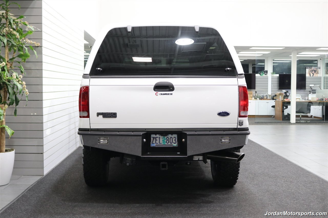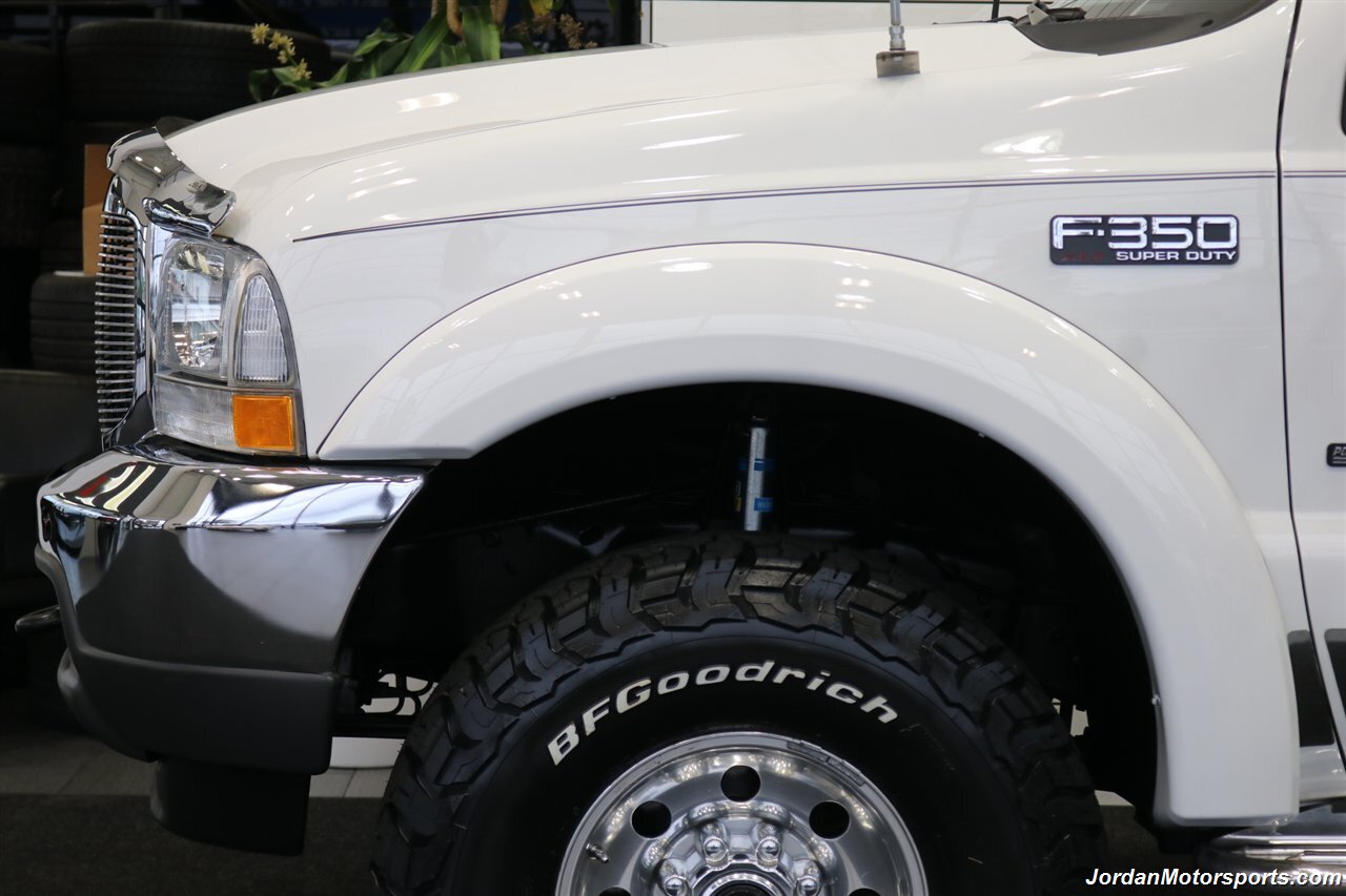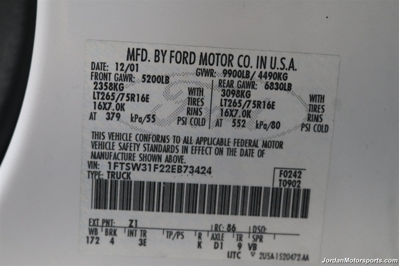 UP FOR GRABS IS A SUPER HARD TO FIND IN THIS SHAPE AND CONDITION AND CENTURION BUILD SPEC LOCAL OREGON SINCE NEW ONE OWNER CLEAN TITLE AND CARFAX CERTIFIED 2002 FORD F-350 CREW CAB LONG BED LARIAT WITH THE UPGRADED CENTURION PACKAGE, LOADED WITH EVERY POSSIBLE OPTION INCLUDING UPGRADED LEATHER INTERIOR, POWER REAR SLIDER, PAINT MATCHED FENDER FLARES, FULL LENGTH RUNNING BOARDS, TOWING MIRRORS, TRAILER BRAKES, CUSTOM MIDDLE SEAT WITH BUILT IN STORAGE, PAINT MATCHED INSULATED CANOPY, SPRAY IN BED LINER, ALLOYS, UPGRADED REAR BUMPER, UNIDEN CB RADIO, UPGRADED BILLET GRILL, BUG SHIELD AND MUCH MORE. NO SIGNS OR RECORDS OF ANY ACCIDENTS OR DAMAGES EVER, NO MAJOR DENTS OR SCRATCHES AT ALL, LIKE NEW INTERIOR WITH NO RIPS OR TEARS OR ANY CRACKS OR STAINS AT ALL. THE EXTERIOR PAINT SHOWS LIKE NEW WITH ZERO CLEAR COAT OR PAINT ISSUES AT ALL, ALWAYS GARAGED IN A CLIMATE CONTROLLED SHOP, UPGRADED PILLAR PODS, UPGRADED EXHAUST TURBO BACK AND MUCH MORE. WE JUST DID A NEW 2.75" LEVELING KIT WITH ALL NEW BILSTEIN 5100 SERIES SHOCKS ALL THE WAY AROUND, WE ALSO UPGRADED THE TIRES TO NEW SET OF 35" BF GOODRICH KO3 10-PLY TIRES ALL THE WAY AROUND, AND WE JUST DID A FULL SERVICE ON IT INCLUDING NEW AIR FILTER / NEW DOOR LOCK ACTUATORS / COOLANT FLUSH / AC RECHARGE / NEW BRAKE LIGHT BULB / NEW ALIGNMENT AND MORE. THIS F-350 SHOWS NO SIGNS OF EVER BEING DRIVEN IN MUD OR SNOW AT ALL, THE UNDER CARRIAGE IS 100% RUST & CORROSION FREE, ALSO NO SIGNS OF ANY OIL LEAKS AT ALL, RUNS AND DRIVES AS DESIGNED WITH EVERYTHING WORKING AS IT SHOULD. THIS CENTURION F-350 COMES WITH A LOT OF SERVICE RECORDS, ALL ORIGINAL BOOKS AND MANUALS AND 2 SETS OF KEYS AS WELL.