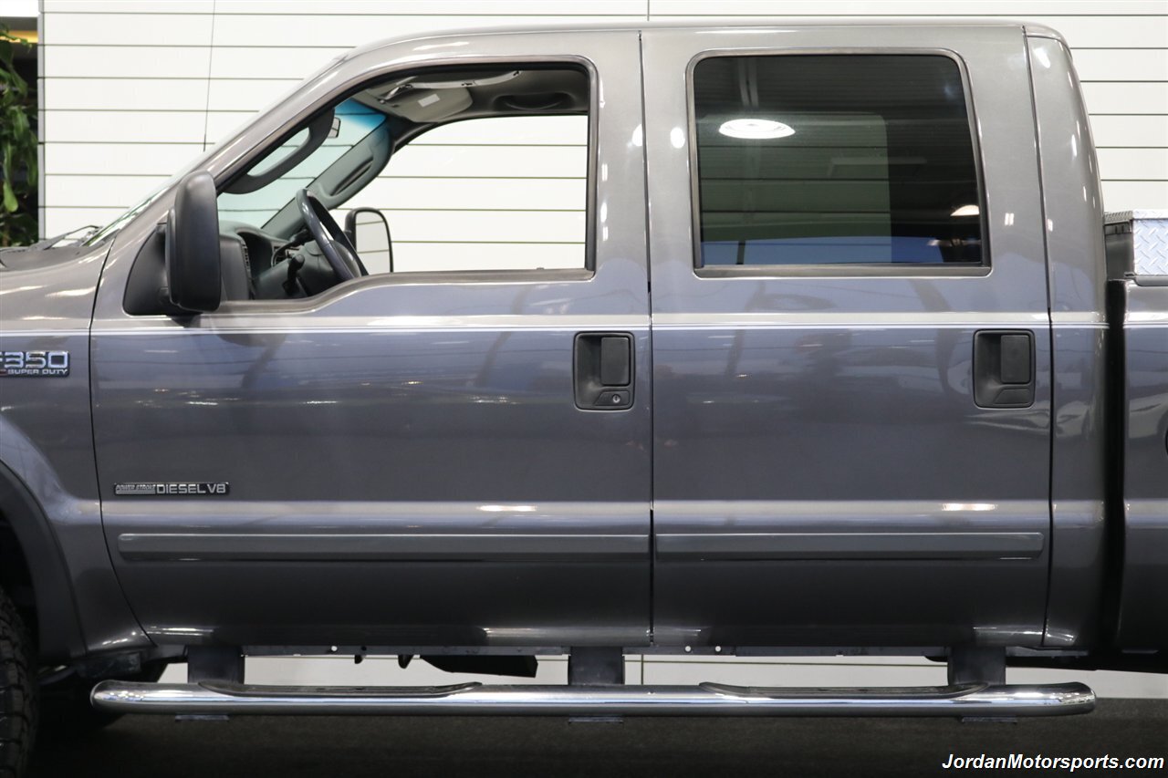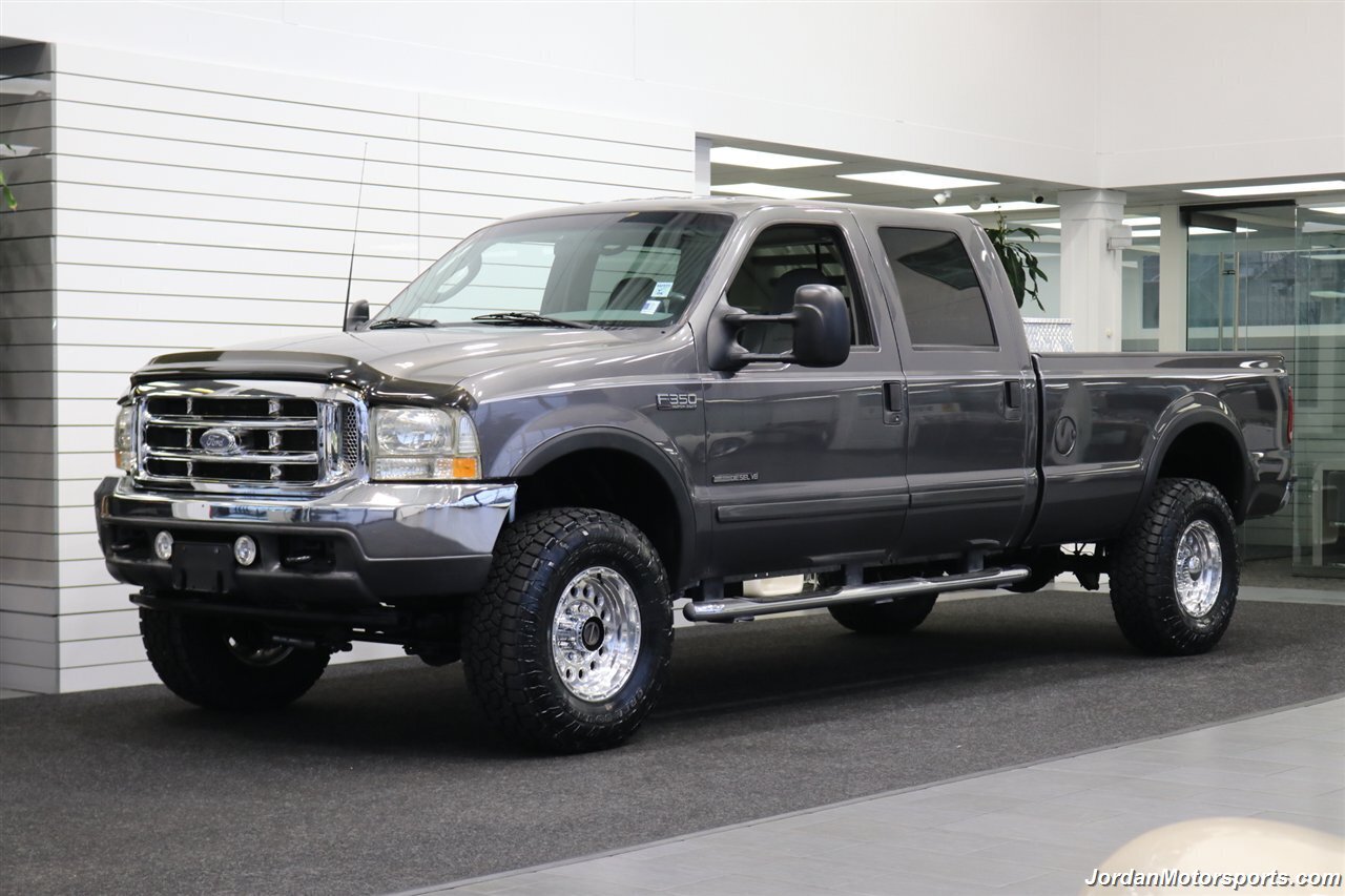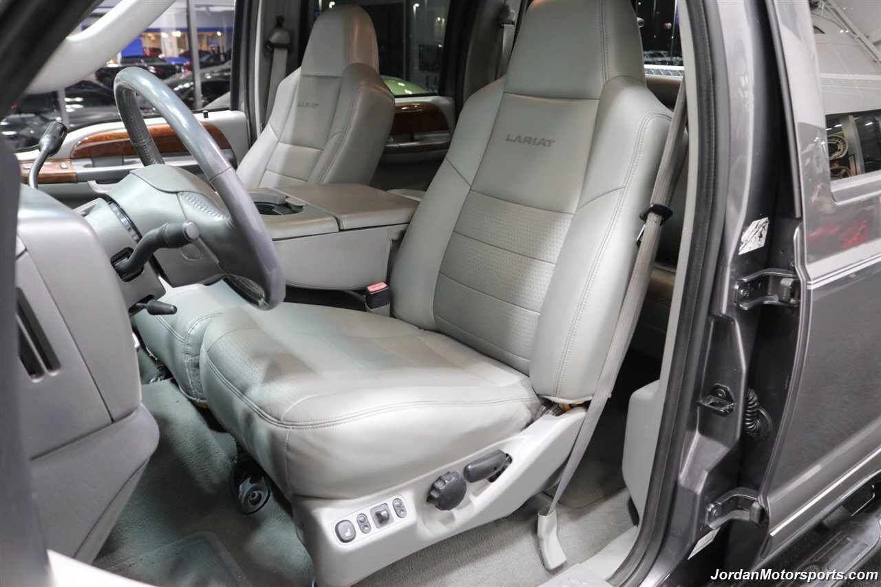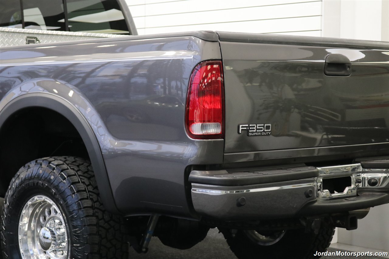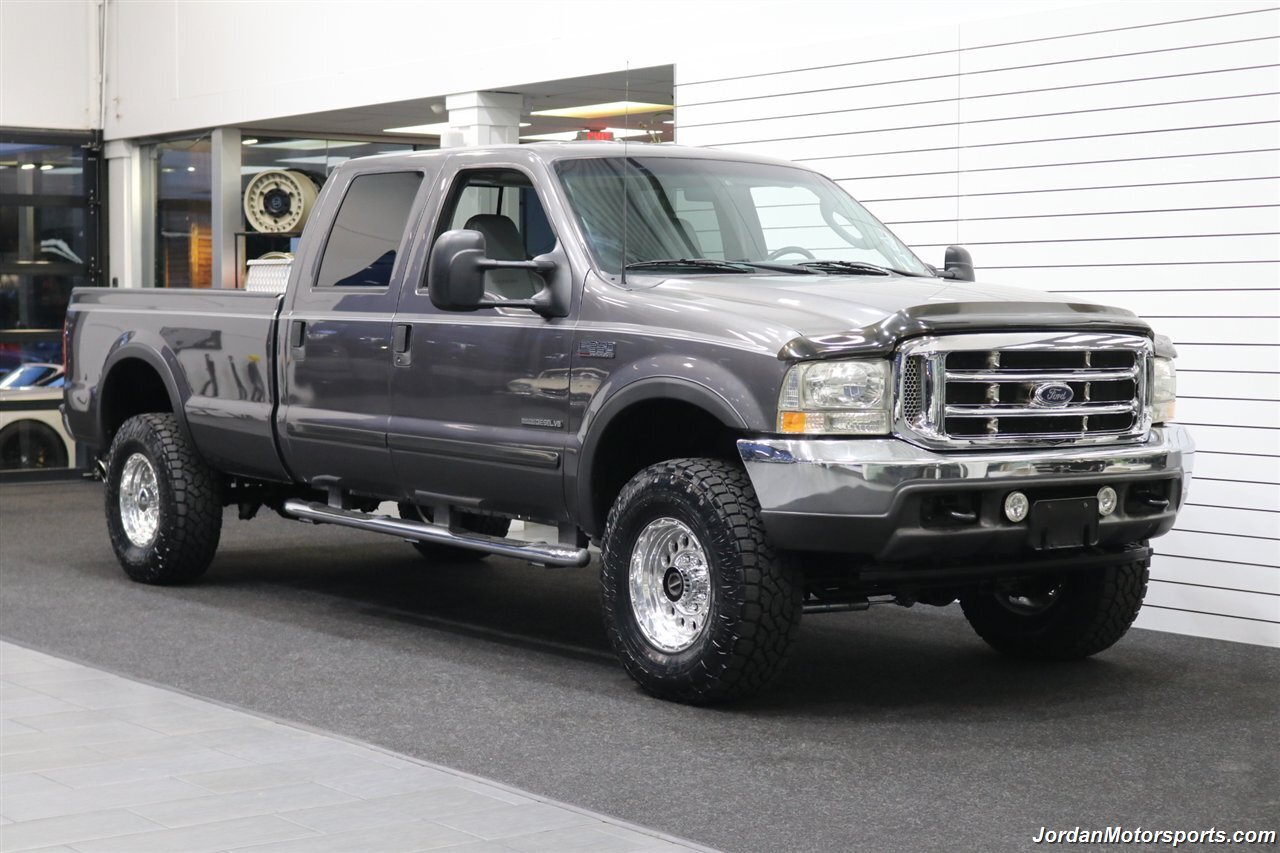 UP FOR GRABS IS A SUPER HARD TO FIND IN THIS SHAPE AND CONDITION AND SUPER LOW MILES LOCAL FRESH TRADE IN CLEAN TITLE AND CARFAX CERTIFIED 2003 FORD F-350 CREW CAB LONG BED LARIAT LOADED WITH ALL OPTIONS FROM THE FACTORY INCLUDING 6-PASSENGER SEATING, LEATHER HEATED SEATS, TOWING MIRRORS, RUNNING BOARDS, FOG LIGHTS, REAR SLIDER, PARKING SENSORS, TOW PACKAGE, TRAILER BRAKES, REAR LOAD LEVELING AIRBAGS AND MUCH MORE. NO SIGNS OR RECORDS OF ANY ACCIDENTS OR DAMAGES EVER, NO MAJOR DENTS OR SCRATCHES, LIKE NEW NON-SMOKER INTERIOR FREE OF ANY RIPS OR TEARS OR ANY BROKEN PLASTICS. THE UNDER CARRIAGE IS 100% RUST & CORROSION FREE, NO SIGNS OF EVER BEING IN MUD OR SNOW AT ALL, NEVER HAD A 5TH WHEEL OR GOOSENECK INSTALLED, THE BED IS IN A GREAT SHAPE, THE PAINT AND CLEAR COAT IS IN EXCELLENT SHAPE, COMES WITH A DROP IN DIAMOND PLATE TOOL BOX, ALL ORIGINAL BOOKS AND MANUALS AND 2 KEYS. WE JUST DID A FULL SERVICE ON THIS F-350 INCLUDING OIL CHANGE & FILTER / NEW DOOR LOCK ACTUATORS / NEW WIPER BLADES /COOLANT FLUSH / AC RECHARGE / NEW 2.5" FRONT LEVELING KIT WITH BILSTEIN 5100 SERIES SHOCKS ALL THE WAY AROUND, BILSTEIN FRONT STEERING STABILIZER AND MORE. WE ALSO UPGRADED THE WHEELS TO NEW 17" RACELINE POLISHED WHEELS WITH NEW 35" TOYO OPEN COUNTRY A/T 3 10-PLY TIRES AS WELL. THIS F-350 COMES WITH A NEW REBUILT TRANSMISSION WITH HEAVY DUTY TORQUE CONVERTER AND BILLET GEARS 6K MILES AGO AS WELL A NEW TRANSFER CASE SEAL, UPGRADED K&N COLD AIR INTAKE, 4" EXHAUST TURBO BACK WITH MUFFLER AND MORE.
