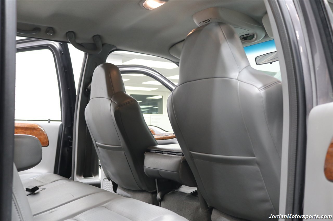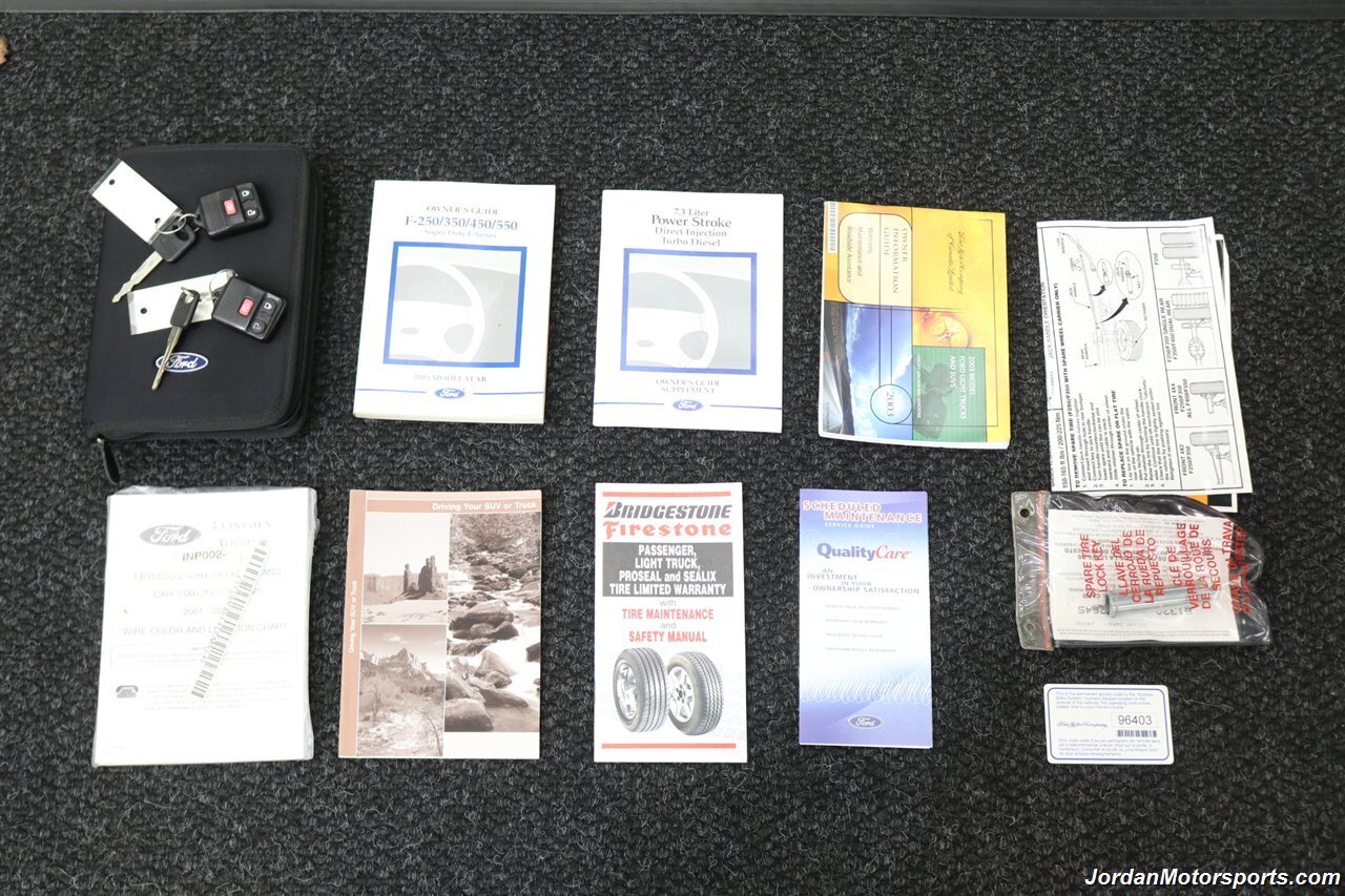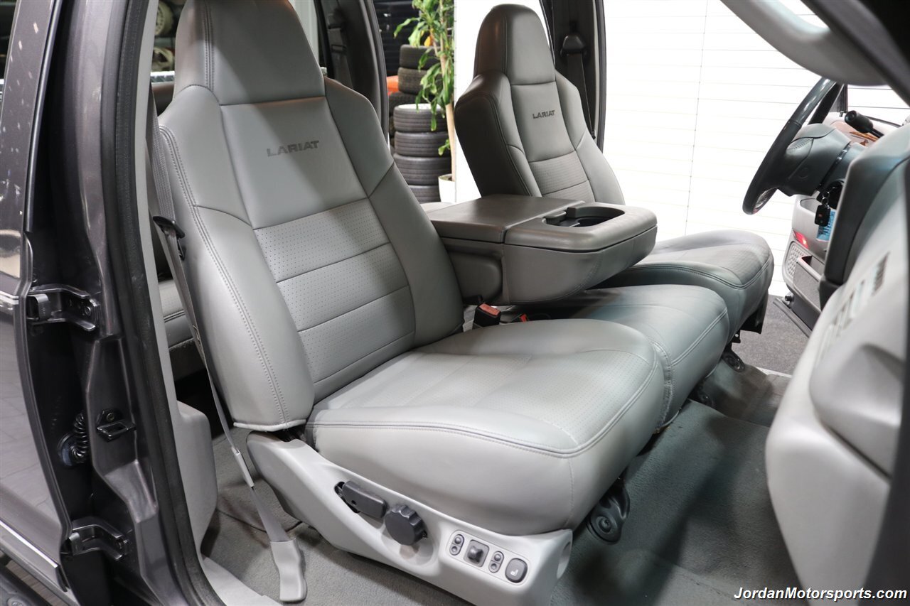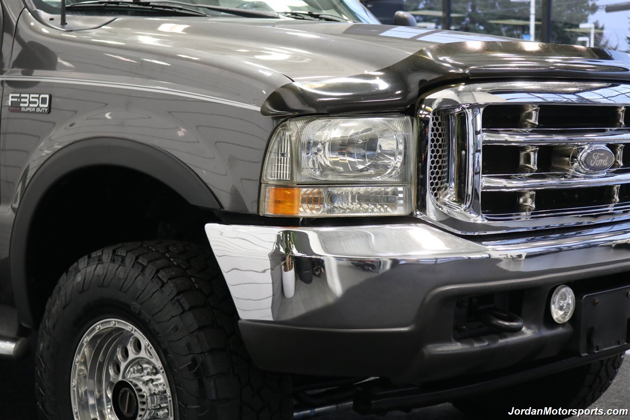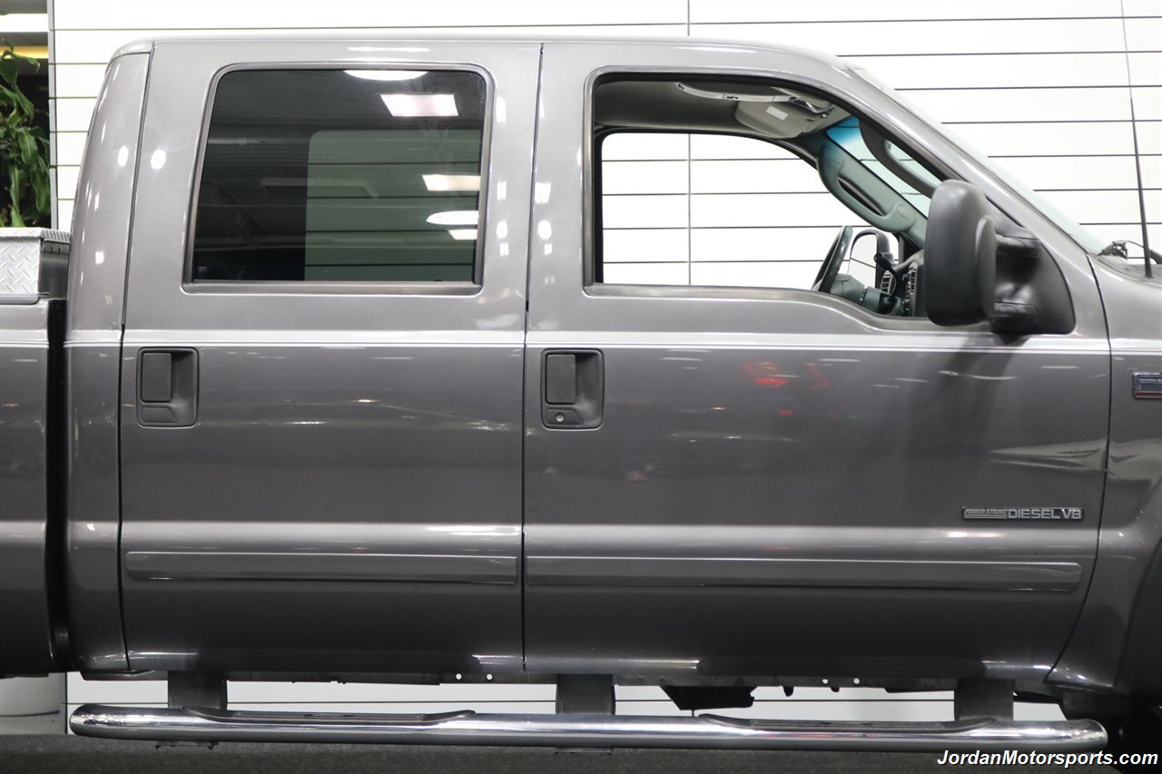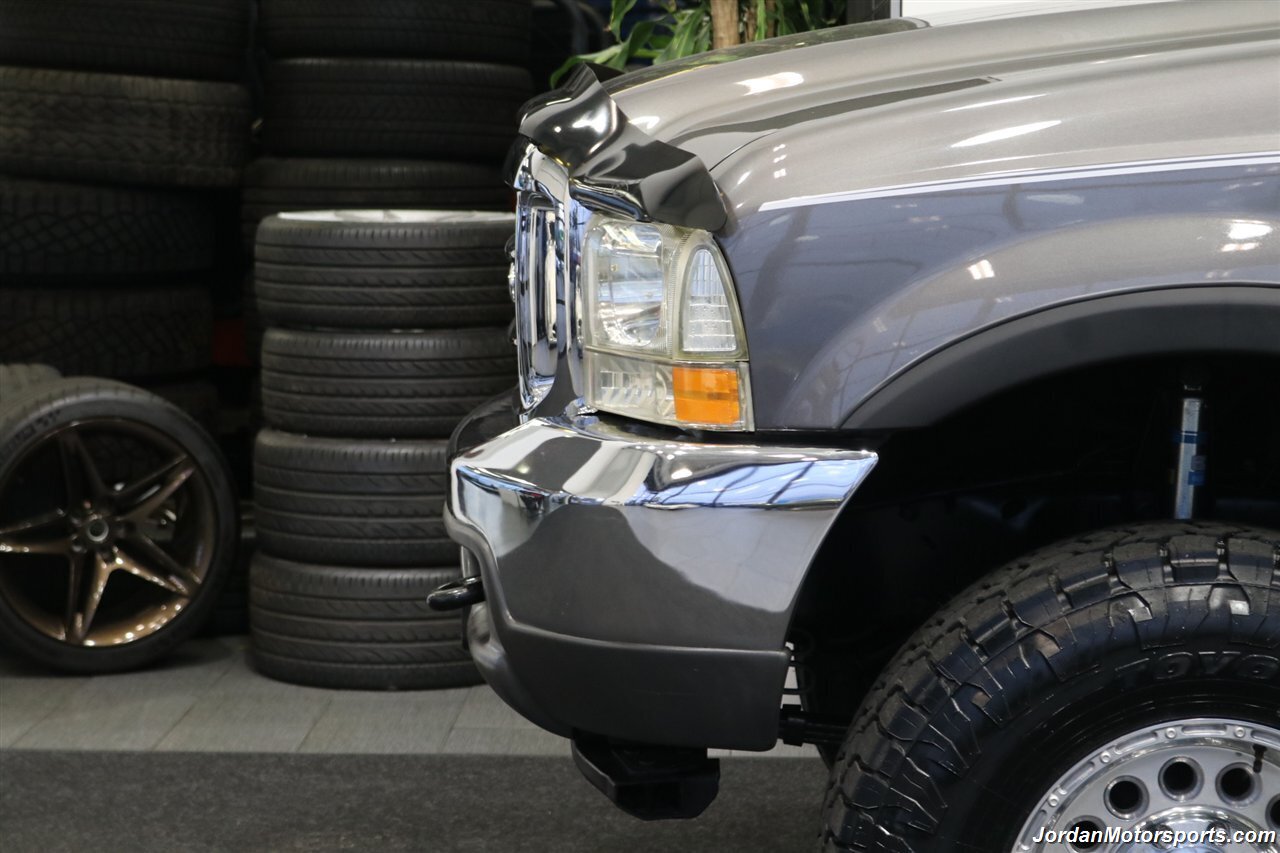 UP FOR GRABS IS A SUPER HARD TO FIND IN THIS SHAPE AND CONDITION AND SUPER LOW MILES LOCAL FRESH TRADE IN CLEAN TITLE AND CARFAX CERTIFIED 2003 FORD F-350 CREW CAB LONG BED LARIAT LOADED WITH ALL OPTIONS FROM THE FACTORY INCLUDING 6-PASSENGER SEATING, LEATHER HEATED SEATS, TOWING MIRRORS, RUNNING BOARDS, FOG LIGHTS, REAR SLIDER, PARKING SENSORS, TOW PACKAGE, TRAILER BRAKES, REAR LOAD LEVELING AIRBAGS AND MUCH MORE. NO SIGNS OR RECORDS OF ANY ACCIDENTS OR DAMAGES EVER, NO MAJOR DENTS OR SCRATCHES, LIKE NEW NON-SMOKER INTERIOR FREE OF ANY RIPS OR TEARS OR ANY BROKEN PLASTICS. THE UNDER CARRIAGE IS 100% RUST & CORROSION FREE, NO SIGNS OF EVER BEING IN MUD OR SNOW AT ALL, NEVER HAD A 5TH WHEEL OR GOOSENECK INSTALLED, THE BED IS IN A GREAT SHAPE, THE PAINT AND CLEAR COAT IS IN EXCELLENT SHAPE, COMES WITH A DROP IN DIAMOND PLATE TOOL BOX, ALL ORIGINAL BOOKS AND MANUALS AND 2 KEYS. WE JUST DID A FULL SERVICE ON THIS F-350 INCLUDING OIL CHANGE & FILTER / NEW DOOR LOCK ACTUATORS / NEW WIPER BLADES /COOLANT FLUSH / AC RECHARGE / NEW 2.5" FRONT LEVELING KIT WITH BILSTEIN 5100 SERIES SHOCKS ALL THE WAY AROUND, BILSTEIN FRONT STEERING STABILIZER AND MORE. WE ALSO UPGRADED THE WHEELS TO NEW 17" RACELINE POLISHED WHEELS WITH NEW 35" TOYO OPEN COUNTRY A/T 3 10-PLY TIRES AS WELL. THIS F-350 COMES WITH A NEW REBUILT TRANSMISSION WITH HEAVY DUTY TORQUE CONVERTER AND BILLET GEARS 6K MILES AGO AS WELL A NEW TRANSFER CASE SEAL, UPGRADED K&N COLD AIR INTAKE, 4" EXHAUST TURBO BACK WITH MUFFLER AND MORE.