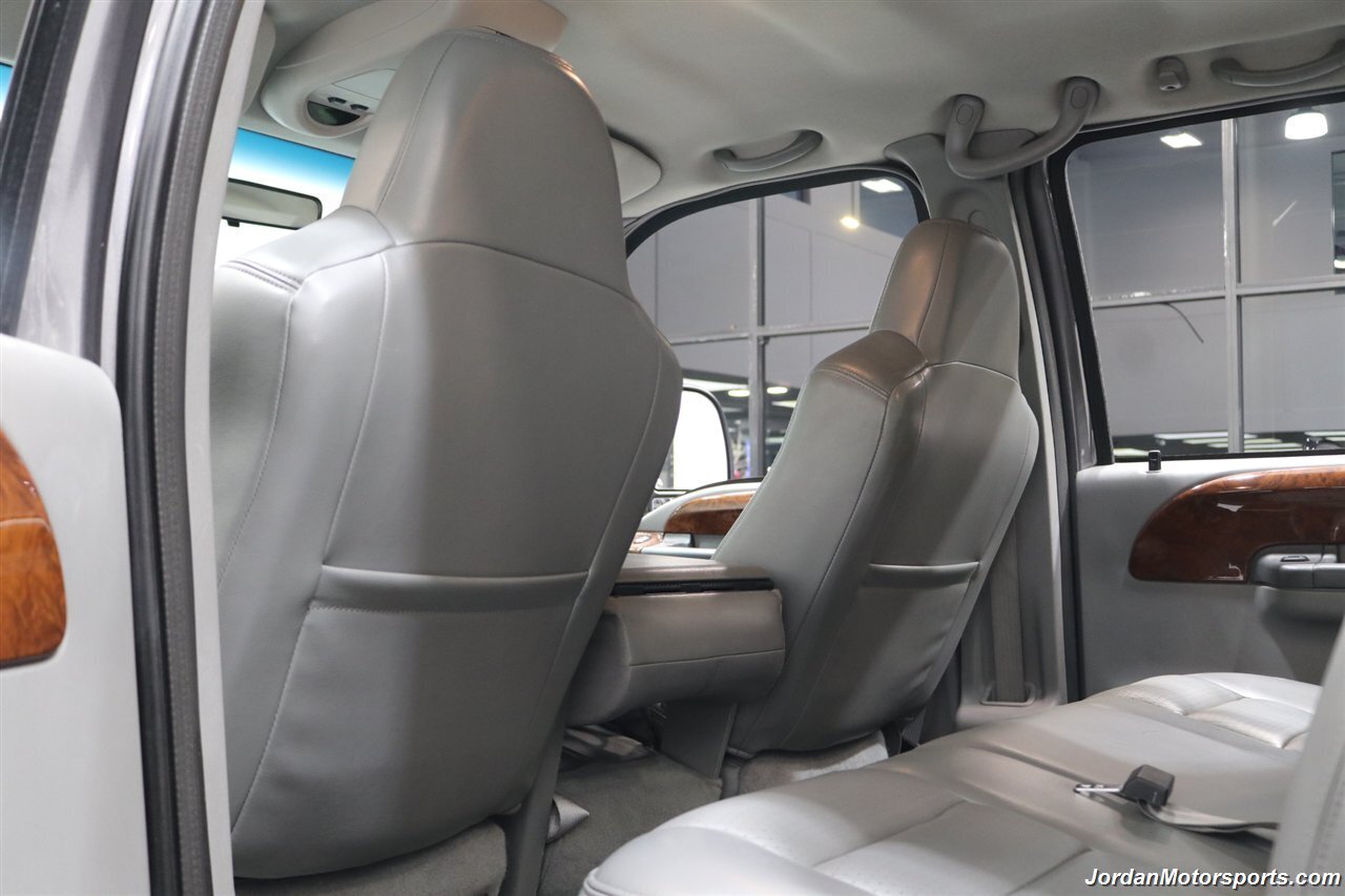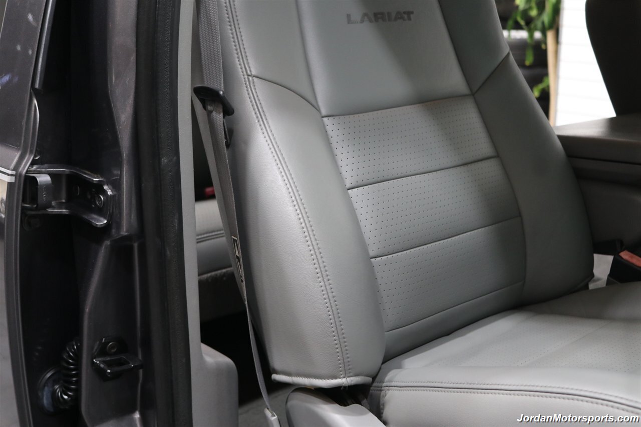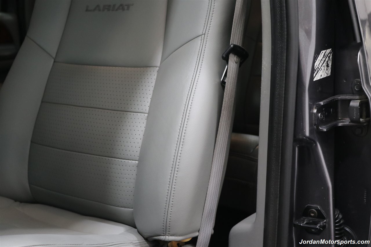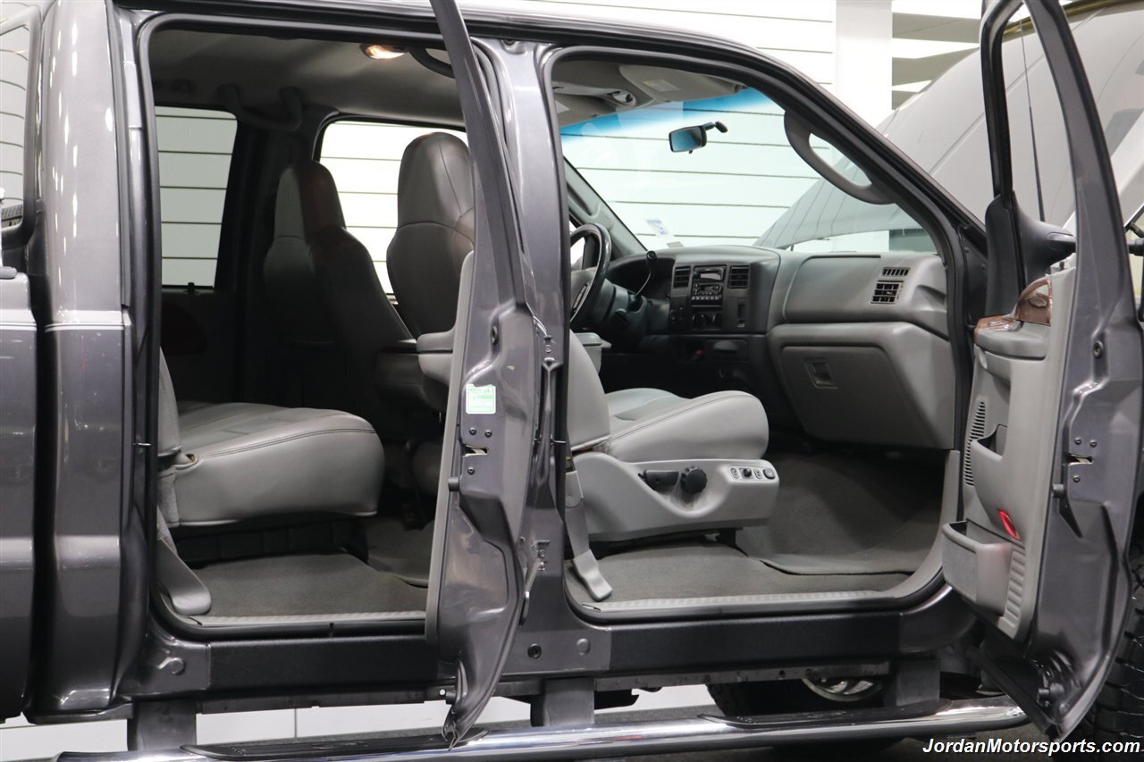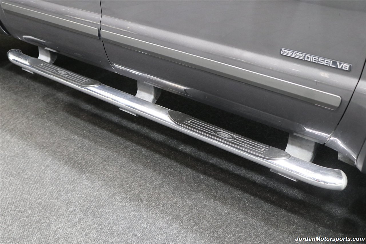 UP FOR GRABS IS A SUPER HARD TO FIND IN THIS SHAPE AND CONDITION AND SUPER LOW MILES LOCAL FRESH TRADE IN CLEAN TITLE AND CARFAX CERTIFIED 2003 FORD F-350 CREW CAB LONG BED LARIAT LOADED WITH ALL OPTIONS FROM THE FACTORY INCLUDING 6-PASSENGER SEATING, LEATHER HEATED SEATS, TOWING MIRRORS, RUNNING BOARDS, FOG LIGHTS, REAR SLIDER, PARKING SENSORS, TOW PACKAGE, TRAILER BRAKES, REAR LOAD LEVELING AIRBAGS AND MUCH MORE. NO SIGNS OR RECORDS OF ANY ACCIDENTS OR DAMAGES EVER, NO MAJOR DENTS OR SCRATCHES, LIKE NEW NON-SMOKER INTERIOR FREE OF ANY RIPS OR TEARS OR ANY BROKEN PLASTICS. THE UNDER CARRIAGE IS 100% RUST & CORROSION FREE, NO SIGNS OF EVER BEING IN MUD OR SNOW AT ALL, NEVER HAD A 5TH WHEEL OR GOOSENECK INSTALLED, THE BED IS IN A GREAT SHAPE, THE PAINT AND CLEAR COAT IS IN EXCELLENT SHAPE, COMES WITH A DROP IN DIAMOND PLATE TOOL BOX, ALL ORIGINAL BOOKS AND MANUALS AND 2 KEYS. WE JUST DID A FULL SERVICE ON THIS F-350 INCLUDING OIL CHANGE & FILTER / NEW DOOR LOCK ACTUATORS / NEW WIPER BLADES /COOLANT FLUSH / AC RECHARGE / NEW 2.5" FRONT LEVELING KIT WITH BILSTEIN 5100 SERIES SHOCKS ALL THE WAY AROUND, BILSTEIN FRONT STEERING STABILIZER AND MORE. WE ALSO UPGRADED THE WHEELS TO NEW 17" RACELINE POLISHED WHEELS WITH NEW 35" TOYO OPEN COUNTRY A/T 3 10-PLY TIRES AS WELL. THIS F-350 COMES WITH A NEW REBUILT TRANSMISSION WITH HEAVY DUTY TORQUE CONVERTER AND BILLET GEARS 6K MILES AGO AS WELL A NEW TRANSFER CASE SEAL, UPGRADED K&N COLD AIR INTAKE, 4" EXHAUST TURBO BACK WITH MUFFLER AND MORE.
