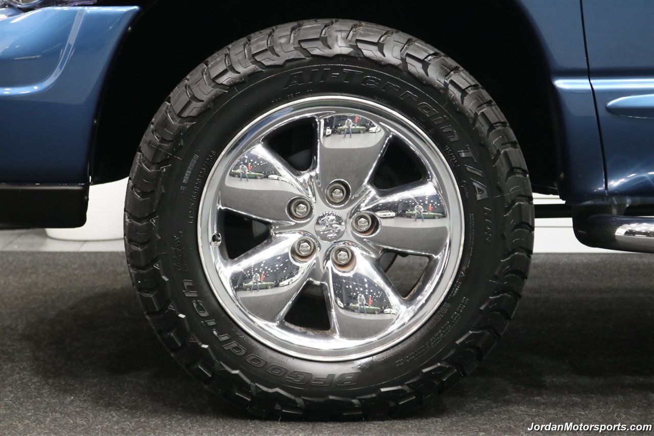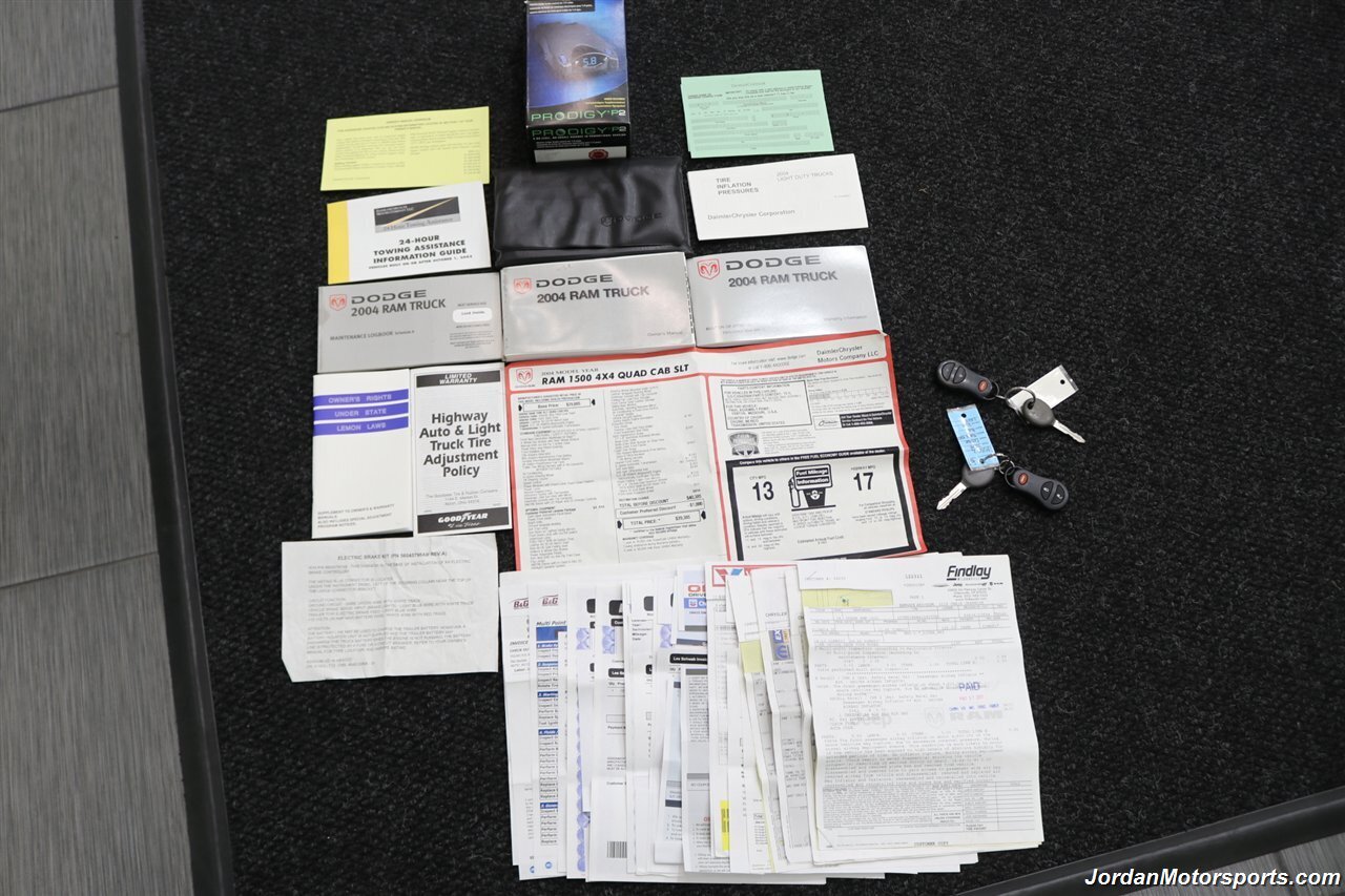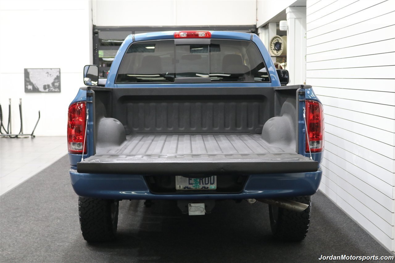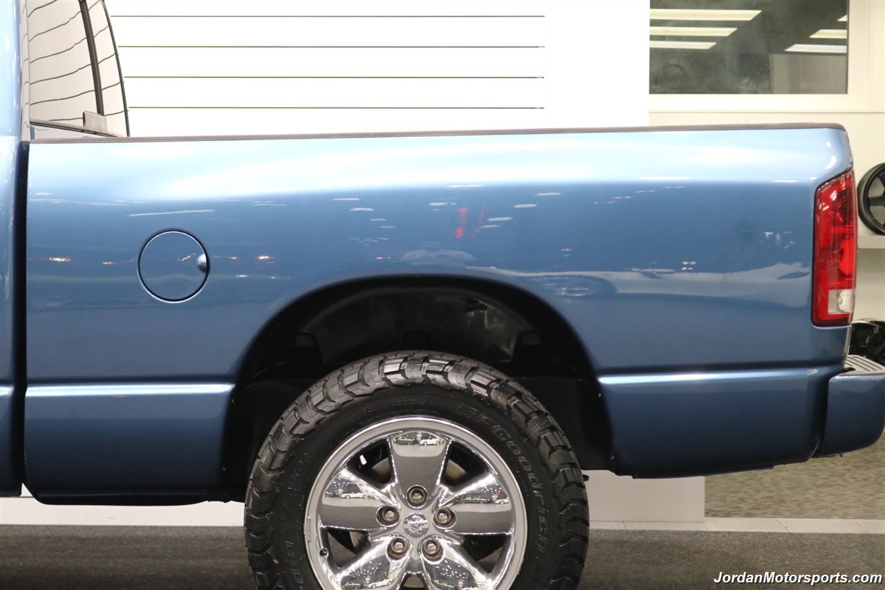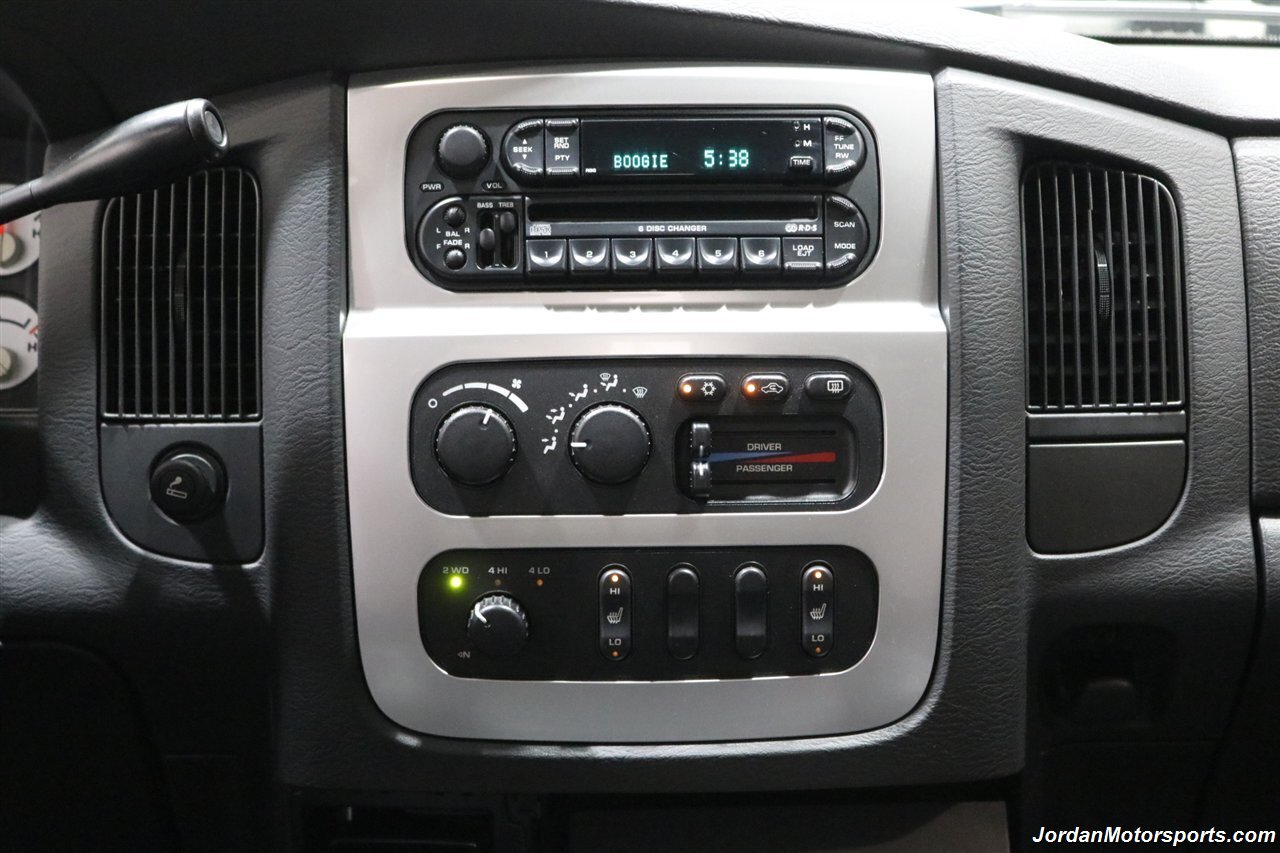 UP FOR GRABS IS A SUPER HARD TO FIND IN THIS SHAPE AND CONDITION AND SUPER LOW MILES LOCAL OREGON SINCE NEW 1-OWNER CLEAN TITLE AND CARFAX CERTIFIED FRESH TRADE IN 2004 DODGE RAM 1500 QUAD CAB SHORT BED SPORT 4X4 LARAMIE WITH 5.7L V8 HEMI ENGINE AND ONLY 66K ACTUAL MILES, LIKE NEW IN AND OUT, NO SIGNS OR RECORDS OF ANY ACCIDENTS EVER, NO MAJOR DENTS OR SCRATCHES AT ALL, LIKE NEW NON-SMOKER INTERIOR FREE OF ANY RIPS OR TEARS OR ANY BROKEN PLASTICS OR STAINS ON CARPET. THE PAINT SHOWS IN EXCELLENT CONDITION WITH NO CLEAR COAT PEELING OR FADING, THE UNDER CARRIAGE OF THIS RAM IS 100% RUST & CORROSION FREE, NO SIGNS OF THIS RAM EVER BEING DRIVEN IN ANY MUD OR SNOW AT ALL. THIS IS THE TOP OF THE LINE FOR THE YEAR TRIM PACKAGE, COMES WITH 6-PASSENGER SEATING, HEATED LEATHER DUAL POWER SEATS, INFINITI SOUND SYSTEM, TINTED WINDOWS, REAR SLIDER, 20" FACTORY CHROME WHEELS WITH BRAND NEW 34" BF GOODRICH KO3 TIRES ALL THE WAY AROUND, RUNNING BOARDS, TOWING MIRRORS, ADJUSTABLE PEDALS, SPRAY IN BED LINER AND MUCH MORE. THIS RAM HAS PAINT MATCHED BUMPERS ALONG WITH FRONT GRILL AND UPGRADED FRONT BUG SHIELD. THIS RAM HAS BEEN OWNED BY THE SAME OWNER SINCE NEW FOR THE LAST 22 YEARS, ALL SERVICE RECORDS SINCE NEW ARE PART OF THIS SALE, THE PREVIOUS OWNER JUST DID A FULL MAJOR SERVICE ON IT PRIOR TO SELLING IT TO US INCLUDING ALL NEW FLUIDS IN TRANSMISSION - FRONT DIFFERENTIAL - REAR DIFFERENTIAL TRANSFER CASE - POWER STEERING FLUID AND MORE. WE ALSO JUST DID A NEW OIL CHANGE AND FILTER / NEW AIR FILTER / NEW WIPER BLADES / NEW FRONT BRAKES & ROTORS / BRAKE FLUID FLUSH / COOLANT FLUSH / AC RECHARGE / NEW DRIVERS SEAT MOTOR AND ALL NEW TIRES. THIS RAM COMES WITH ALL ORIGINAL BOOKS AND MANUALS / 2 SETS OF KEYS & REMOTES AND EVERY SERVICE RECORD SINCE NEW.