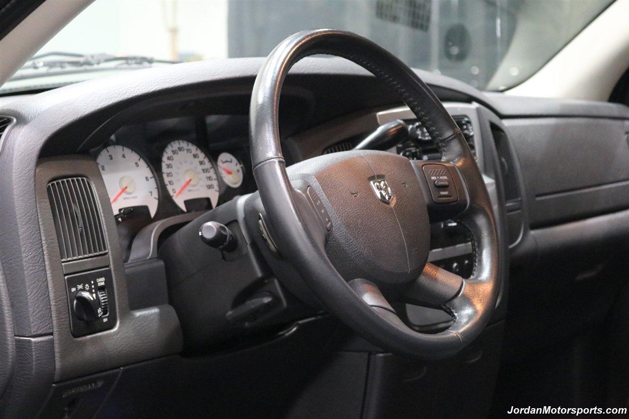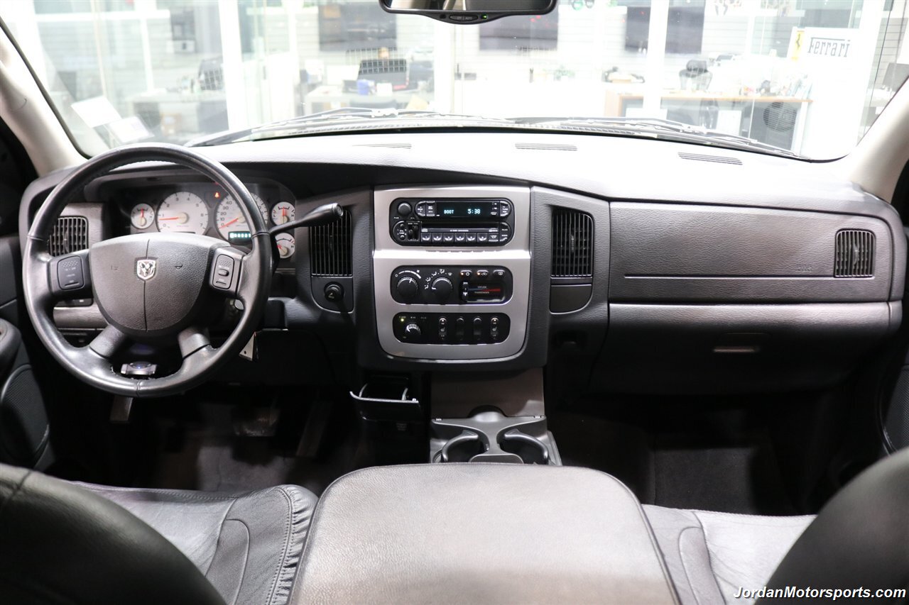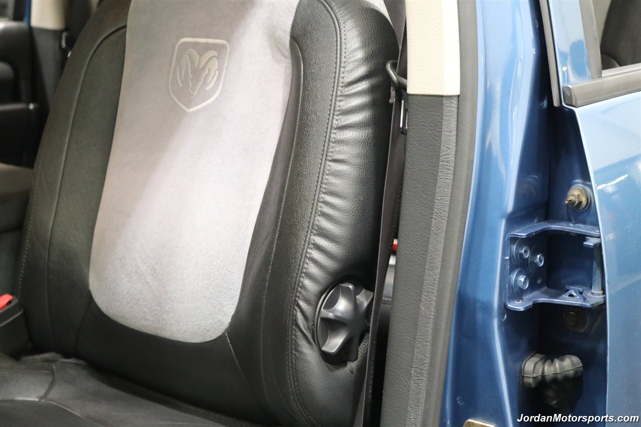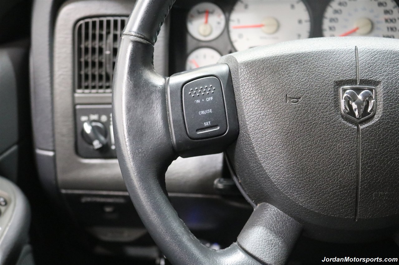 UP FOR GRABS IS A SUPER HARD TO FIND IN THIS SHAPE AND CONDITION AND SUPER LOW MILES LOCAL OREGON SINCE NEW 1-OWNER CLEAN TITLE AND CARFAX CERTIFIED FRESH TRADE IN 2004 DODGE RAM 1500 QUAD CAB SHORT BED SPORT 4X4 LARAMIE WITH 5.7L V8 HEMI ENGINE AND ONLY 66K ACTUAL MILES, LIKE NEW IN AND OUT, NO SIGNS OR RECORDS OF ANY ACCIDENTS EVER, NO MAJOR DENTS OR SCRATCHES AT ALL, LIKE NEW NON-SMOKER INTERIOR FREE OF ANY RIPS OR TEARS OR ANY BROKEN PLASTICS OR STAINS ON CARPET. THE PAINT SHOWS IN EXCELLENT CONDITION WITH NO CLEAR COAT PEELING OR FADING, THE UNDER CARRIAGE OF THIS RAM IS 100% RUST & CORROSION FREE, NO SIGNS OF THIS RAM EVER BEING DRIVEN IN ANY MUD OR SNOW AT ALL. THIS IS THE TOP OF THE LINE FOR THE YEAR TRIM PACKAGE, COMES WITH 6-PASSENGER SEATING, HEATED LEATHER DUAL POWER SEATS, INFINITI SOUND SYSTEM, TINTED WINDOWS, REAR SLIDER, 20" FACTORY CHROME WHEELS WITH BRAND NEW 34" BF GOODRICH KO3 TIRES ALL THE WAY AROUND, RUNNING BOARDS, TOWING MIRRORS, ADJUSTABLE PEDALS, SPRAY IN BED LINER AND MUCH MORE. THIS RAM HAS PAINT MATCHED BUMPERS ALONG WITH FRONT GRILL AND UPGRADED FRONT BUG SHIELD. THIS RAM HAS BEEN OWNED BY THE SAME OWNER SINCE NEW FOR THE LAST 22 YEARS, ALL SERVICE RECORDS SINCE NEW ARE PART OF THIS SALE, THE PREVIOUS OWNER JUST DID A FULL MAJOR SERVICE ON IT PRIOR TO SELLING IT TO US INCLUDING ALL NEW FLUIDS IN TRANSMISSION - FRONT DIFFERENTIAL - REAR DIFFERENTIAL TRANSFER CASE - POWER STEERING FLUID AND MORE. WE ALSO JUST DID A NEW OIL CHANGE AND FILTER / NEW AIR FILTER / NEW WIPER BLADES / NEW FRONT BRAKES & ROTORS / BRAKE FLUID FLUSH / COOLANT FLUSH / AC RECHARGE / NEW DRIVERS SEAT MOTOR AND ALL NEW TIRES. THIS RAM COMES WITH ALL ORIGINAL BOOKS AND MANUALS / 2 SETS OF KEYS & REMOTES AND EVERY SERVICE RECORD SINCE NEW.