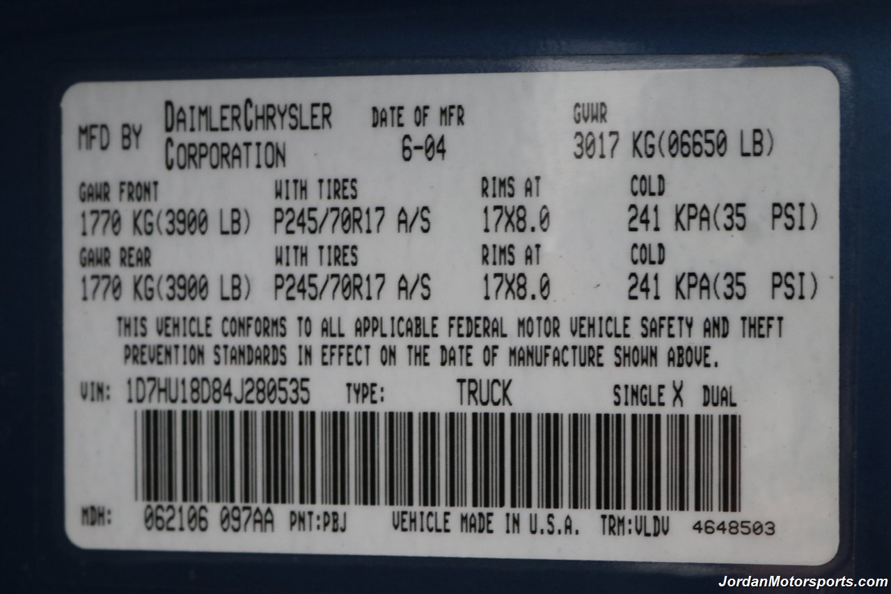 WE CAN FINANCE THIS 1-OWNER 2004 DODGE RAM 1500 SPORT LARAMIE WITH ZERO DOWN PAYMENT AND UP TO 84 MONTHS WITH RATES AS IF IT IS A NEW CAR O.A.C. SO HURRY AND DONT LOSE YOUR CHANCE ON THIS RARE FIND. THIS WILL NOT LAST LONG SO PLEASE SEE US ON OUR WEBSITE JORDANMOTORSPORTS.COM FOR MORE INFORMATION, MORE DETAILED PHOTOS & ADDITIONAL INVENTORY! CALL US FOR APPOINTMENT TODAY! "BY APPOINTMENT ONLY" WE'RE A SMALL FAMILY OWNED AND OPERATED DEALERSHIP PLEASE CALL AHEAD OF TIME TO CHECK FOR AVAILABILITY & TO SCHEDULE YOUR HASSLE FREE DEMONSTRATION! THANK YOU FOR YOUR UNDERSTANDING C.U.D.L. (CREDIT UNION DIRECT LENDING) & BANK FINANCING AVAILABLE ON APPROVED CREDIT (OAC)