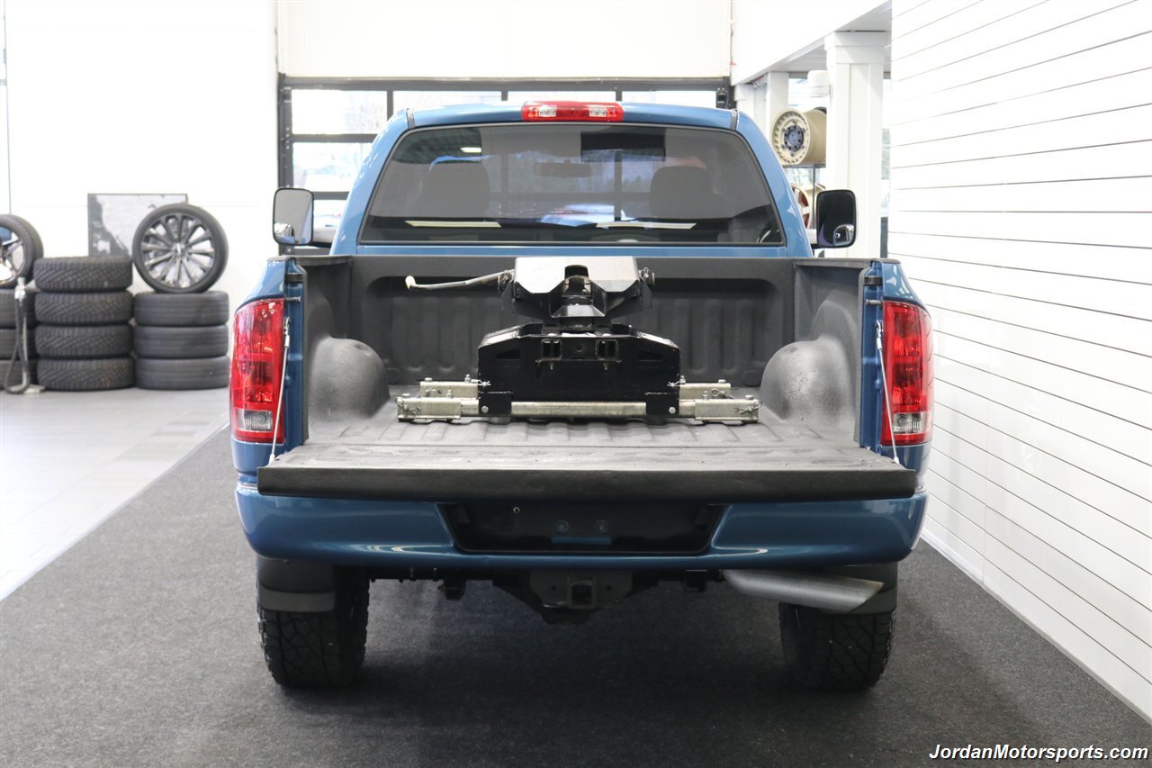 UP FOR GRABS IS A SUPER HARD TO FIND IN THIS SHAPE AND CONDITION AND LOW MILES LOCAL OREGON / CALIFORNIA ONE OWNER SINCE NEW CLEAN TITLE AND CARFAX CERTIFIED FRESH TRADE IN 2004.5 DODGE RAM 3500 1-TON CREW CAB SHORT BED SLT 4X4 WITH TURBO CUMMINS 5.9L HIGH OUTPUT AND ONLY 117K ACTUAL MILES. LIKE NEW IN AND OUT, NO SIGNS OR RECORDS OF ANY ACCIDENTS OR DAMAGES EVER, NO MAJOR DENTS OR SCRATCHES AT ALL, LIKE NEW INTERIOR FREE OF ANY RIPS OR TEARS OR ANY BROKEN PLASTICS, PERFECT DASH AND HEADLINER, EXCELLENT CONDITION CARPET AND PAINT WITH NO CLEAR COAT ISSUES WITH PEELING OR FADING AT ALL. THERE IS NO SIGNS OF THIS TRUCK EVER BEING DRIVEN IN MUD OR SNOW AT ALL, THE UNDER CARRIAGE IS 100% RUST & CORROSION FREE, THERE IS NOSURFACE RUST EVEN. THIS TRUCK IS LOADED WITH ALL OPTIONS INCLUDING 6-PASSENGER SEATING, FACTORY TINTED WINDOWS, RUNNING BOARDS, TOWING MIRRORS, SPRAY IN BED LINER, POWER SEAT, INFINITY SOUND SYSTEM, POWER SEAT, TRAILER BRAKES AND MORE. THIS TRUCK COMES WITH REAR LOAD LEVELING AIRBAGS AND TOP OF THE LINE SUPER GLIDE 5TH WHEEL SET UP. THIS RAM COMES WITH ALMOST A BRAND NEW ( 3K MILES AGO ) 33" ALL TERRAIN A/T II 10-PLY TIRES, ALL ORIGINAL BOOKS AND MANUALS AND 2 SETS OF KEYS AND REMOTES. WE JUST DID A FRESH SERVICE ON THIS RAM INCLUDING OIL CHANGE & FILTER / NEW FRONT SWAY BAR LINKS / BRAKE FLUID FLUSH / NEW BATTERY TERMINALS / AC FRESH SERVICE & CHARGE / NEW WIPER BLADES / NEW AIR FILTER / NEW SERPANTINE BELT / COOLANT FLUSH AND MUCH MORE. THIS RAM COMES WITH UPGRADED BANKS MONSTER EXHAUST AS WELL, NEVER BEEN TUNED, STOCK SUSPENSION. THE ULTIMATE SUPER CLEAN RUST FREE 1-TON GARAGE KEPTS AND UNMODIFIED.