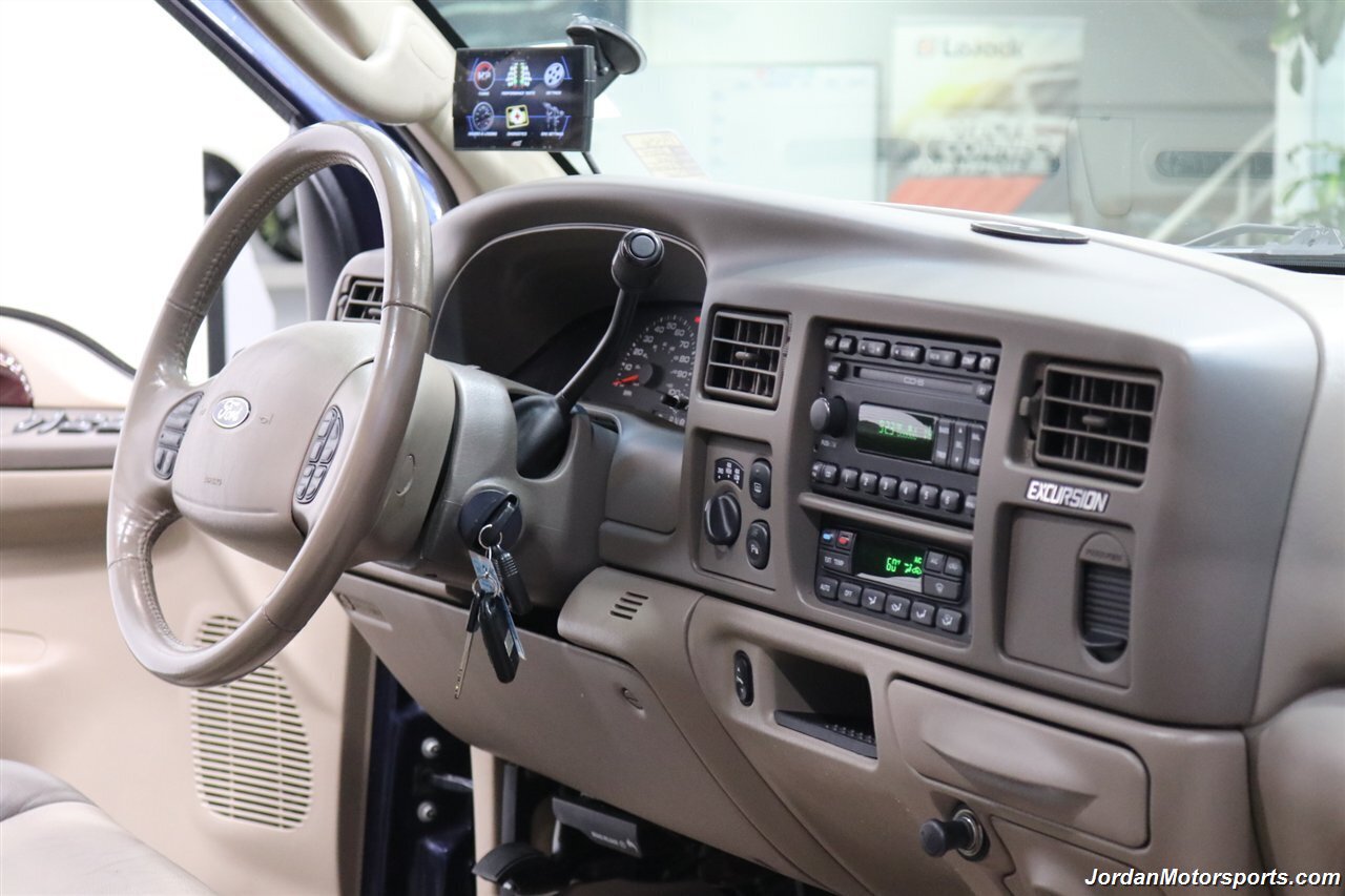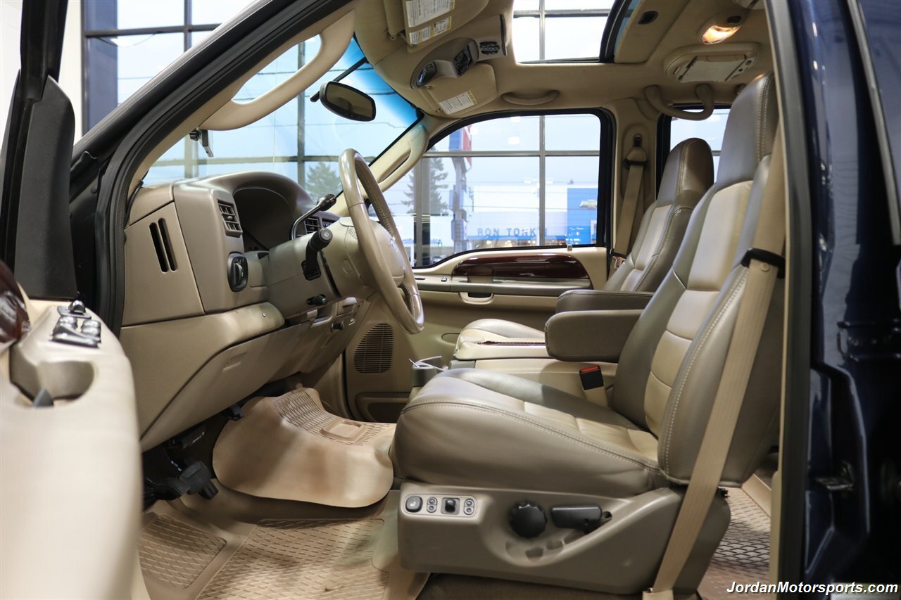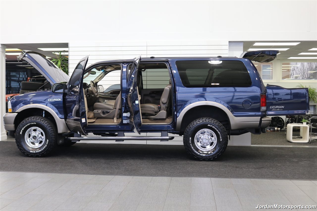 UP FOR GRABS IS A SUPER HARD TO FIND IN THIS SHAPE AND CONDITION AND SUPER LOW MILES LOCAL FRESH TRADE IN ONE OWNER SINCE NEW CLEAN TITLE AND CARFAX CERTIFIED 2004 FORD EXCURSION EDDIE BAUER 4X4 TURBO POWERSTROKE 6.0L THAT WE JUST HAD COMPLETELY ENGINE BULLET PROOFED BY RPM NW WITH ARP HEAD STUDS AND THE FULL PKG. NO SIGNS OR RECORDS OF ANY ACCIDENTS EVER, NO MAJOR DENTS OR SCRATCHES AT ALL, LIKE NEW INTERIOR FREE OF ANY RIPS OR TEARS OR ANY BROKEN PLASTICS OR STAINS ON CARPET. THE UNDER CARRIAGE OF THIS EXURSION IS 100% RUST AND CORROSION FREE, NEVER BEEN DRIVEN IN MUD OR SNOW AT ALL, ZERO RUST ON THIS EXCURSION. THIS EXCURSION COMES WITH SECOND ROW CAPTAIN SEATS WHICH IS VERY RARE, LOADED WITH ALL OPTIONS INCLUDING ADJUSTABLE PEDALS, MOON ROOF, TINTED WINDOWS, RUNNING BOARDS, HEATED SEATS, REAR DVD PLAYER AND MORE. THIS EXCURSION SHOWS LIKE NEW, WE JUST DID FULL SERVICE BESIDES THE BULLET PROOFING INCLUDING BRAKE FLUID FLUSH / NEW FRONT SWAY BAR LINKS / FRESH AC CHARGE / NEW BATTERIES / COOLANT FLUSH / NEW BILSTEIN 2.5" LEVELING KIT WITH BILSTEIN 5100 SERIES SHOCKS ALL THE WAY AROUND, WE ALSO ADDED NEW SET OF 35" BF GOODRICH KO3 10-PLY TIRES ALL THE WAY AROUND. THIS EXCURSION GOT UPGRADED OIL COOLER - STAND PIPES - 4" EXHAUST TURBO BACK, S&B COLD AIR INTAKE - SCT X4 TUNER - EDGE MONITOR AND MUCH MORE. THIS EXCURSION IS A VERY CLEAN SURVIVOR THAT IS 100% RUST FREE, PAINT IS IN EXCELLENT CONDITION AND LOOKS - RUNS - DRIVES GREAT. THE BULLET PROOFING IS ( 9K ) DONE BY THE BEST.