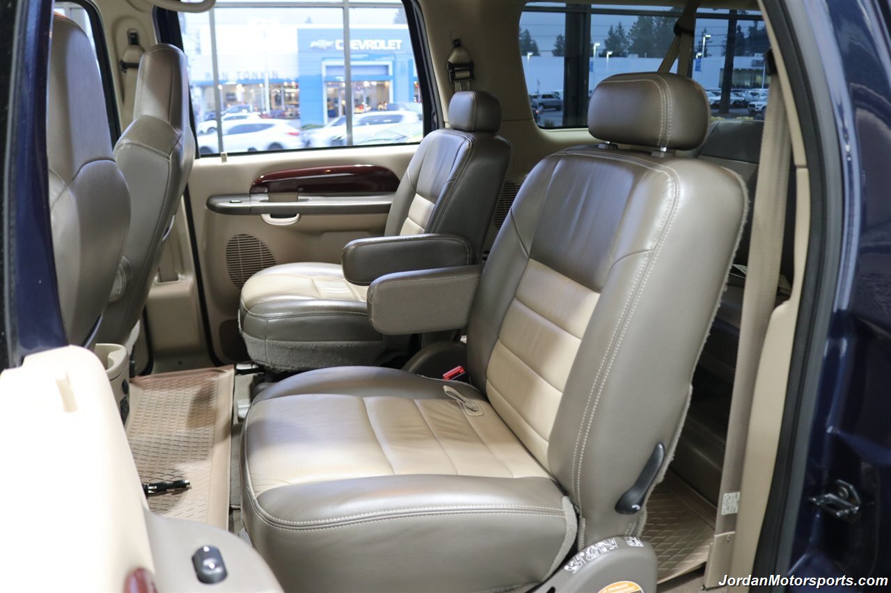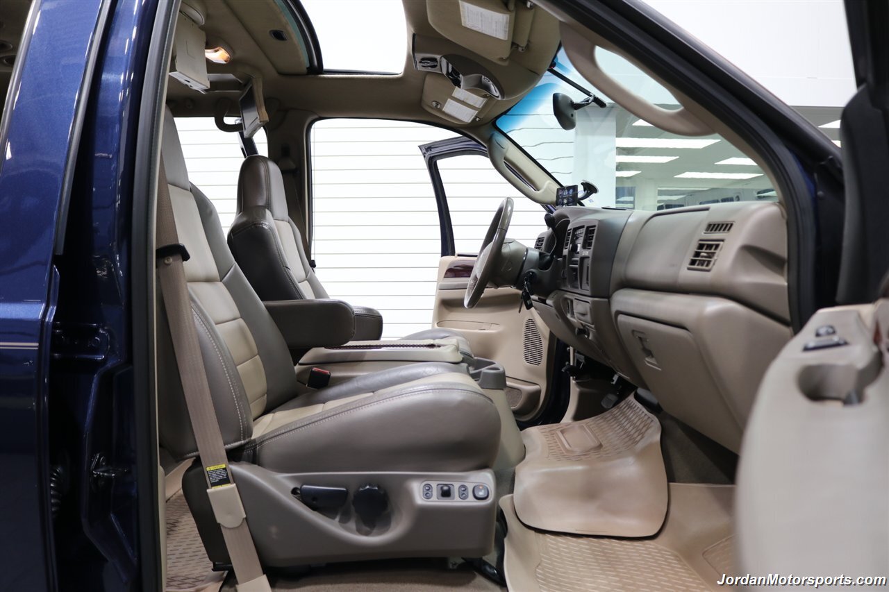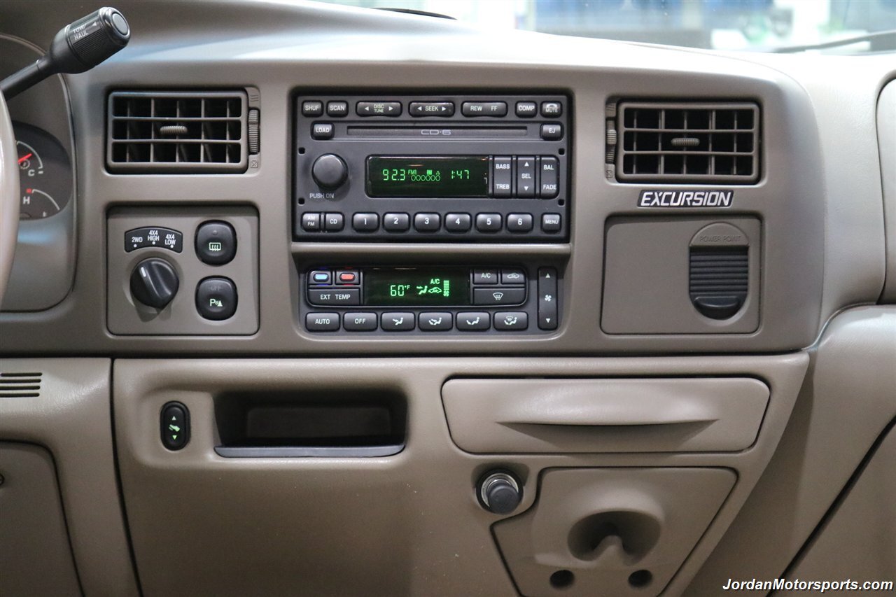 UP FOR GRABS IS A SUPER HARD TO FIND IN THIS SHAPE AND CONDITION AND SUPER LOW MILES LOCAL FRESH TRADE IN ONE OWNER SINCE NEW CLEAN TITLE AND CARFAX CERTIFIED 2004 FORD EXCURSION EDDIE BAUER 4X4 TURBO POWERSTROKE 6.0L THAT WE JUST HAD COMPLETELY ENGINE BULLET PROOFED BY RPM NW WITH ARP HEAD STUDS AND THE FULL PKG. NO SIGNS OR RECORDS OF ANY ACCIDENTS EVER, NO MAJOR DENTS OR SCRATCHES AT ALL, LIKE NEW INTERIOR FREE OF ANY RIPS OR TEARS OR ANY BROKEN PLASTICS OR STAINS ON CARPET. THE UNDER CARRIAGE OF THIS EXURSION IS 100% RUST AND CORROSION FREE, NEVER BEEN DRIVEN IN MUD OR SNOW AT ALL, ZERO RUST ON THIS EXCURSION. THIS EXCURSION COMES WITH SECOND ROW CAPTAIN SEATS WHICH IS VERY RARE, LOADED WITH ALL OPTIONS INCLUDING ADJUSTABLE PEDALS, MOON ROOF, TINTED WINDOWS, RUNNING BOARDS, HEATED SEATS, REAR DVD PLAYER AND MORE. THIS EXCURSION SHOWS LIKE NEW, WE JUST DID FULL SERVICE BESIDES THE BULLET PROOFING INCLUDING BRAKE FLUID FLUSH / NEW FRONT SWAY BAR LINKS / FRESH AC CHARGE / NEW BATTERIES / COOLANT FLUSH / NEW BILSTEIN 2.5" LEVELING KIT WITH BILSTEIN 5100 SERIES SHOCKS ALL THE WAY AROUND, WE ALSO ADDED NEW SET OF 35" BF GOODRICH KO3 10-PLY TIRES ALL THE WAY AROUND. THIS EXCURSION GOT UPGRADED OIL COOLER - STAND PIPES - 4" EXHAUST TURBO BACK, S&B COLD AIR INTAKE - SCT X4 TUNER - EDGE MONITOR AND MUCH MORE. THIS EXCURSION IS A VERY CLEAN SURVIVOR THAT IS 100% RUST FREE, PAINT IS IN EXCELLENT CONDITION AND LOOKS - RUNS - DRIVES GREAT. THE BULLET PROOFING IS ( 9K ) DONE BY THE BEST.