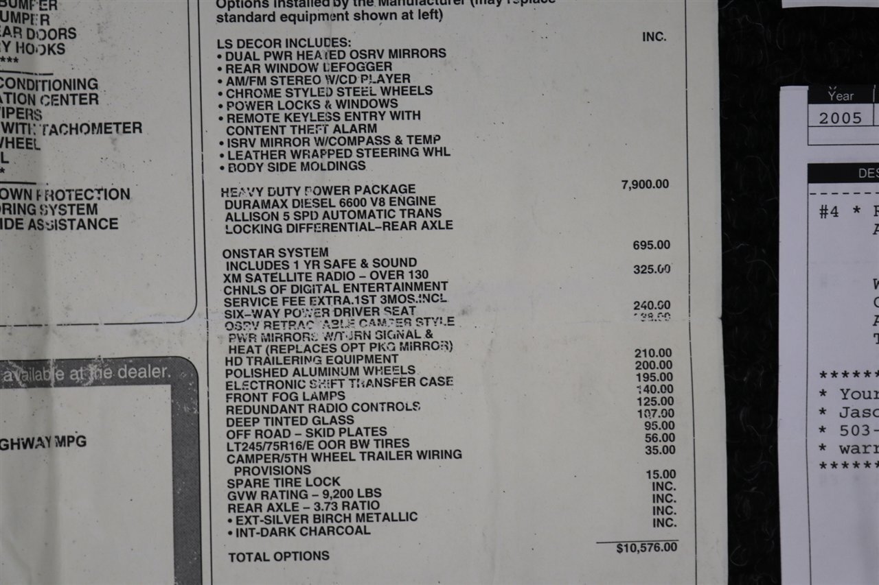 2005 Chevrolet Silverado 2500 LS  1-OWNER* 100% RUST FREE* NEVER HAD 5TH WHEEL / GOOSENECK* 5-SPD ALLISON* SHORT BED* NEW 2.5 "LEVEL LIFT W/ NEW 33 " BFG KO3 10-PLYS* ALL ORIGINAL BOOKS-WINDOW STICKER-2 KEYS-SERVICE RECORDS - Photo 94 - Portland, OR 97230