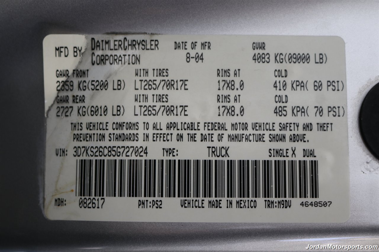 WE CAN FINANCE THIS 1-OWNER 2005 DODGE RAM 2500 WITH ZERO DOWN PAYMENT AND UP TO 84 MONTHS WITH RATES AS IF IT IS A NEW CAR O.A.C. SO HURRY AND DONT LOSE YOUR CHANCE ON THIS RARE FIND. THIS WILL NOT LAST LONG SO PLEASE SEE US ON OUR WEBSITE JORDANMOTORSPORTS.COM FOR MORE INFORMATION, MORE DETAILED PHOTOS & ADDITIONAL INVENTORY! CALL US FOR APPOINTMENT TODAY! "BY APPOINTMENT ONLY" WE'RE A SMALL FAMILY OWNED AND OPERATED DEALERSHIP PLEASE CALL AHEAD OF TIME TO CHECK FOR AVAILABILITY & TO SCHEDULE YOUR HASSLE FREE DEMONSTRATION! THANK YOU FOR YOUR UNDERSTANDING C.U.D.L. (CREDIT UNION DIRECT LENDING) & BANK FINANCING AVAILABLE ON APPROVED CREDIT (OAC)
