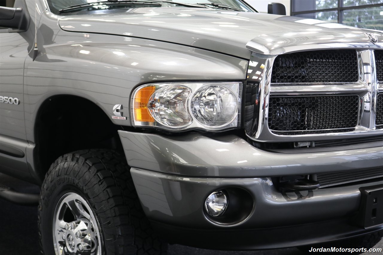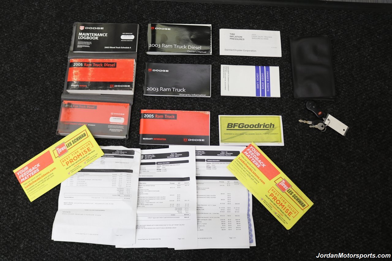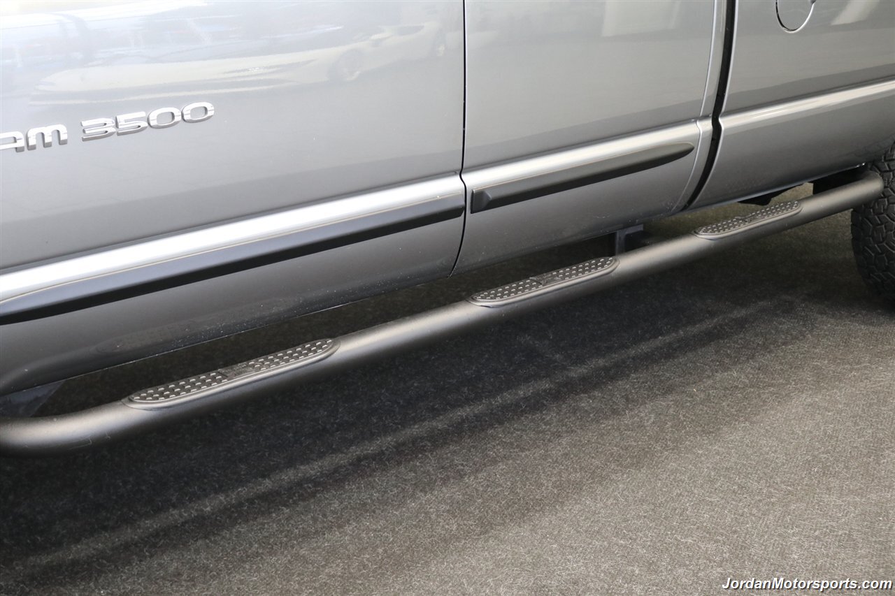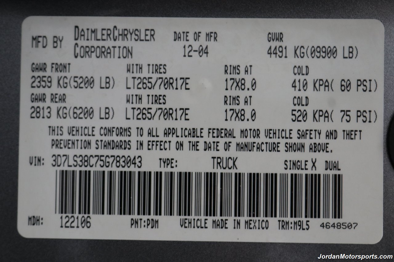 UP FOR GRABS IS A SUPER HARD TO FIND IN THIS SHAPE AND CONDITION AND LOW MILES LOCAL WEST COAST SINCE NEW FRESH TRADE IN CLEAN TITLE AND CARFAX CERTIFIED 2005 DODGE RAM 3500 CREW CAB LONG BED SLT 4X4 WITH TURBO CUMMINS 5.9L AND 6-SPEED MANUAL TRANSMISSION, LOADED UP WITH ALL OPTIONS OFFERED BY DODGE FOR THE YEAR INCLUDING 6-PASSENGER SEATING, FRONT FOG LIGHTS, EXTENDABLE TOWING MIRRORS, FULL LENGTH RUNNING BOARDS, ALL POWER OPTIONS, LINEX SPRAY IN BED LINER, LEER PAINT MATCHED INSULATED TOP OF THE LINE CANOPY AND MUCH MORE. NO SIGNS OR RECORDS OF ANY ACCIDENTS EVER, NO MAJOR DENTS OR SCRATCHES AT ALL, LIKE NEW INTERIOR FREE OF ANY RIPS OR TEARS OR ANY BROKEN PLASTICS, NON-SMOKER PREVIOUS OWNER. THIS TRUCK HAS NO ENGINE MODIFICATIONS WHAT SO EVER, ADULT OWNED ALL OF ITS LIFE, NEVER BEEN OFF ROAD, NEVER HAD A 5TH WHEEL OR GOOSENECK INSTALLED AT ALL, EXCELLENT CONDITION BED, UPGRADED EXHAUST, FRESHLY FULLY SERVICED WITH A FRESH OIL CHANGE & FILTER / NEW DOOR LOCK ACTUATOR / 2-NEW BATTERIES / NEW AIR FILTER / NEW WIPER BLADES / NEW STEERING BOX / POWER STEERING FLUID FLUSH AND CHANGE / NEW SERPENTINE BELT / AC RECHARGE AND MORE. WE ALSO JUST UPGRADED THE SUSPENSION WITH A NEW 3" CARLI LEVEL LIFT WITH ALL NEW FRONT AND REAR BILSTEIN 5100 SERIES SHOCKS ALL THE WAY AROUND AND NEW 34" TOYO OPEN COUNTRY A/T III 10-PLY TIRES. THE PREVIOUS OWNERS JUST DID A FULL FRONT END REBUILT ABOUT 12K MILES AGO INCLUDING ALL NEW BALL JOINTS AND LINKAGES AS WELL AS TRAC BAR AND LINKAGE ASSEMBLY, THEY ALSO JUST HAD ALL NEW BRAKES - ROTORS - CALIPERS -AXLE SEALS AND MORE UPGRADED AS WELL NEW AC CONDESNSOR AND EVAPORATOR AND EXPANSION VALVE REPLACED.