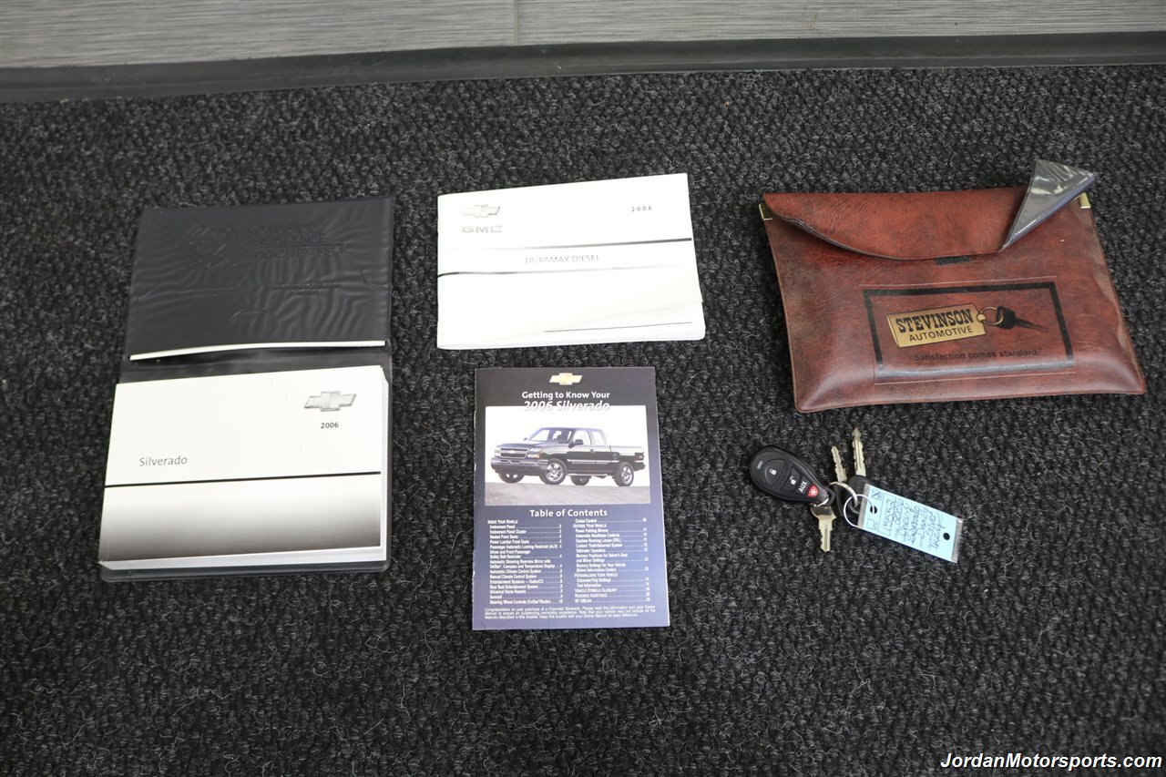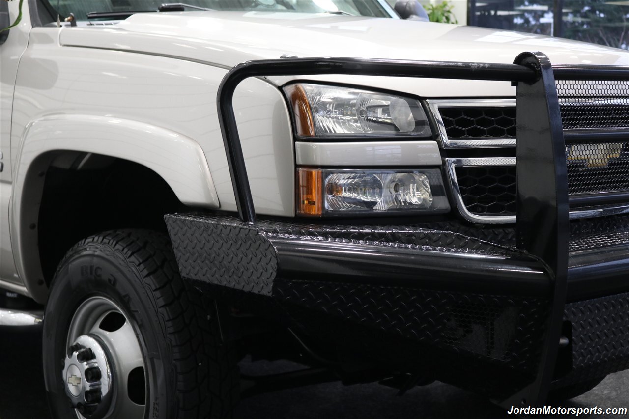 UP FOR GRABS IS A SUPER HARD TO FIND IN THIS SHAPE AND CONDITION AND SUPER LOW MILES FRESH TRADE IN CLEAN TITLE AND CARFAX CERTIFIED ONE OWNER SINCE NEW 100% RUST & CORROSION FREE 2006 CHEVROLET SILVERADO 3500 CREW CAB LONG BED LT3 DUALLY 4X4 WITH LBZ DURAMAX ENGINE AND 6-SPEED ALLISON TRANSMISSION, LOADED WITH EVERY OPTION OFFERED BY GM FOR THE YEAR INCLUDING POWER MOON ROOF, REAR DVD, HEATED POWER LEATHER SEATS, RUNNING BOARDS, EXTENDABLE TOWING MIRRORS, PRIVACY GLASS, SPRAY IN BED LINER, AND MUCH MORE. THIS ISLVERADO HAS NO SIGNS OR RECORDS OF HAVING ANY ACCIDENTS OR DAMAGES EVER, NO MAJOR DENTS OR SCRATCHES AT ALL, LIKE NEW INTERIOR FREE OF ANY RIPS OR TEARS OR ANY BROKEN PLASTICS OR STAINS ON CARPET, THE UNDER CARRIAGE OF THIS SILVERADO IS 100% RUST FREE, NO SIGNS OF EVER BEING DRIVEN IN MUD OR SNOW AT ALL, NO SIGNS OF EVER BEING DRIVEN OFF ROAD EITHER, THE BED IS ALMOST IN NEW CONDITION, NEVER HAD A 5TH WHEEL OR GOOSENECK INSTALLED, THE TRUCK IS 100% STOCK AND HAS NEVER BEEN TUNED, COMES WITH AFE COLD AIR INTAKE, UPGRADED FRONT FAB FOUR HEAVY DUTY FRONT BUMPER WITH BUILT IN HOOKS, THE PREVIOUS OWNER ADDED REAR LOAD LEVELING AIR BAGS, PACBRAKE EXHAUST BRAKE SYSTEM, TRAIN HORNS AND ON BOARD AIR COMPRESSOR, HE ALSO UPGRADED THE FACTORY HEAD UNIT WITH A SONY DOUBLE DIN WITH BLUETOOTH AND HANDS FREE, JUST INSTALLED NEW 10-PLY A/T TIRES ALL THE WAY AROUND 2K MILES AGO AND DID SERVICE INCLUDING ALL NEW DIFFERENTIALS FLUID FLUSH AND REPLACED. WE JUST DID A FRESH SERVICE INCLUDING A NEW OIL CHANGE & FILTER / BRAKE FLUID FLUSH / COOLANT FLUSH / FRESH AC CHARGE / NEW WIPER BLADES / NEW GLOW PLUGS / NEW IDLER CONTROL ARM W/ BRACKET / 2-NEW BATTERIES AND MORE. THIS IS PROPABLY THE NICEST CLEANEST MOST LOADED LBZ DURAMAX DUALLY THAT HIT THE MARKET AND THAT WILL MOST LIKELY EVER HIT AGAIN SO HURRY AND BE THE LUCKY OWNER OF THIS RARE FIND.