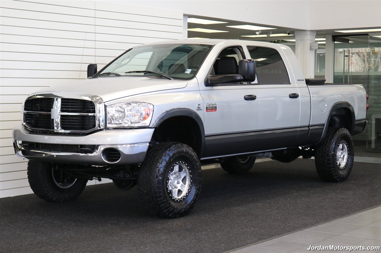 UP FOR GRABS IS A SUPER HARD TO FIND IN THIS SHAPE AND CONDITION AND SUPER LOW MILES LOCAL OREGON ONE OWNER SINCE NEW CLEAN TITLE AND CARFAX CERTIFIED 2007 DODGE RAM 2500 MEGA CAB 4X4 WITH 6.7L TURBO CUMMINS AND A 6-SPEED MANUAL TRANSMISSION, LOADED WITH ALL OPTIONS INCLUDING LEATHER INTERIOR, HEATED SEATS, POWER SEAT, TOW MIRRORS, 2-TONE PAINT AND MUCH MORE. THERE IS NO SIGNS OR RECORDS OF ANY ACCIDENTS OR DAMAGES EVER, NO MAJOR DENTS OR SCRATCHES AT ALL, LIKE NEW INTERIOR FREE OF ANY RIPS OR TEARS OR ANY BROKEN PLASTICS OR STAINS ON CARPET, THE PAINT SHOWS AS GOOD AS NEW, NO CLEAR COAT PEELING OR FADING AT ALL, THE INTERIOR SMELLS LIKE NEW AS WELL. THIS RAM HAS NEVER BEEN OFF ROAD OR DRIVEN IN MUD OR SNOW, THE UNDER CARRIAGE IS IN NEW CONDITION AND IS 100% RUST & CORROSION FREE, THE SUSPENSION HAS BEEN UPGRADED WITH A 4" BILSTEIN LIFT AND ADJUSTABLE ARMS, ALL NEW BILSTEIN 5100 SERIES SHOCKS ALL THE WAY AROUND, ALMOST BRAND NEW SET OF 17" INNOV8 RACING FORGED WHEELS WITH BEADLOCK RINGS AND FLAT CAPS AND 35" TOYO OPEN COUNTRY A/T III 10-PLY TIRES ALL THE WAY AROUND. THIS RAM ALSO COMES WITH A SPRAY IN BED LINER AND AN IN-BED TOOL BOX, IT HAS NEVER HAD A 5TH WHEEL OR GOOSNECK HOOK UP AT ALL, IT HAS AN UPGRADED TURBO BACK 4" EXHAUST AND HAS H&S TUNER WITH 4 BUILT IN TUNES TAKING THE POWER FROM STOCK UP TO 120 ADDITIONAL HORSE POWER.