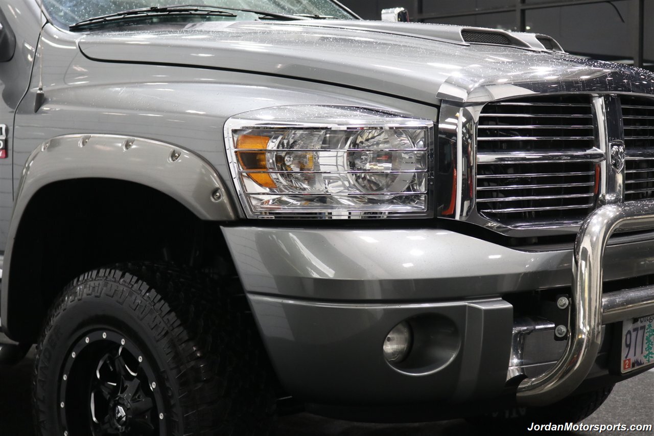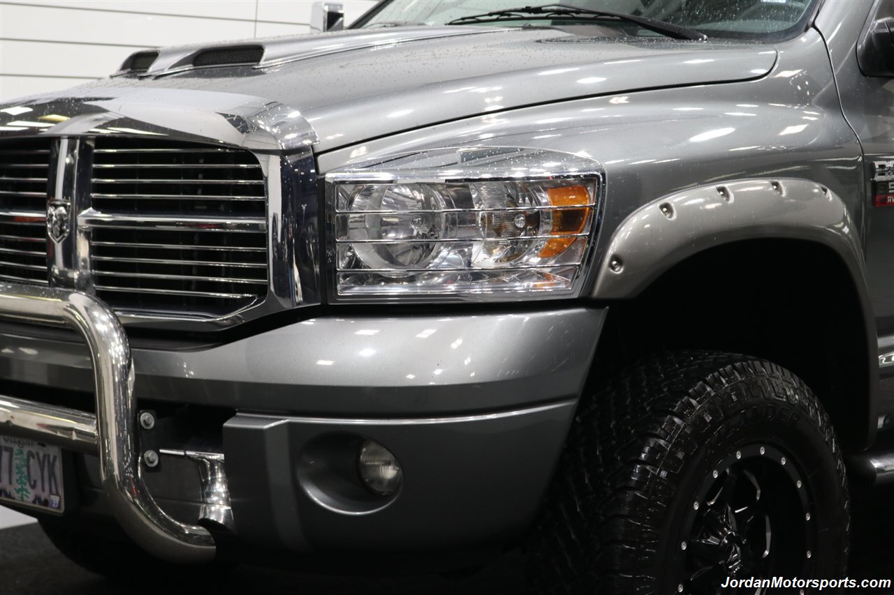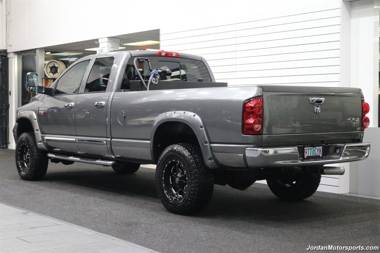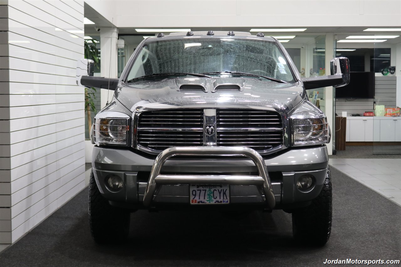 UP FOR GRABS IS A SUPER HARD TO FIND IN THIS SHAPE AND CONDITION AND SUPER LOW MILEAGE ONE OF THE FINAL TURBO CUMMINS 5.9L HIGH OUTPUT TRUCKS THAT ROLLED OFF THE LINE FROM DODGE 2007 DODGE RAM 3500 QUAD CAB LONG BED 4X4 LARAMIE WITH ONLY 98K MILES, LIKE NEW IN AND OUT, NO SIGNS OR RECORDS OF ANY ACCIDENTS OR DAMAGES EVER, NO MAJOR DENTS OR SCRATCHES AT ALL, LIKE NEW INTERIOR FREE OF ANY RIPS OR TEARS OR ANY BROKEN PLASTICS AT ALL, 0-STAINS ON THE CARPET AS WELL. THE UNDER CARRIAGE OF THIS ONE OWNER OREGON TRUCK SINCE NEW IS IN NEW CONDITION AND SHOWS ZERO RUST, NO SIGNS OF EVER BEING DRIVEN IN ANY MUD OR SNOW OR OFF ROAD AT ALL, 0-SURFACE RUST/ 0-TEXTURE. THIS RAM HAS A LOT OF GREAT UPGRADES SUCH AS REAR FIRESTONE LOAD LEVELING AIRBAGS WITH ON BOARD AIR COMPRESSOR, LEVELED ON A NEW SET OF FUEL WHEELS AND 10-PLY ALL TERRAIN TIRES, GOOSENECK IN THE BED, SPRAY IN BED LINER, EXTRA FUEL TANK IN BED, FRONT BULL BAR, LOTS OF CHROME ADD ONS THAT CAN BE REMOVED IF BUYER CHOOSES TO, PAINT MATCHED BUSHWACKER FENDER FLARES AND MORE. THIS IS A LARAMIE MODEL LOADED WITH ALL OPTIONS INCLUDING FULL LEATHER INTERIOR, POWER SEAT, HEATED SEATS, MOON ROOF, POWER REAR SLIDER, TOWING MIRRORS, TRAILER BRAKES, TINTED WINDOWS, 6-PASSENGER SEATING AND MORE. THIS RAM ALSO COMES WITH UPGRADED COLD AIR INTAKE, EDGE TUNER THAT IS C.A.R.B. LEGAL FOR BETTER TOWING OPTIONS AND GAS MILEAGE, UPGRADED LED HEAD LIGHT BULBS AND MORE. YOU CAN RUN UP TO 37" TIRES WITH THIS LEVELING KIT IF YOU CHOOSE TO. THIS RAM COMES WITH ORIGINAL WINDOW STICKER / 2 SETS OF KEYS AND MANUALS.