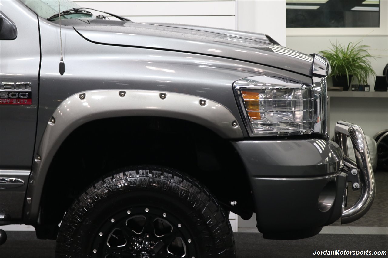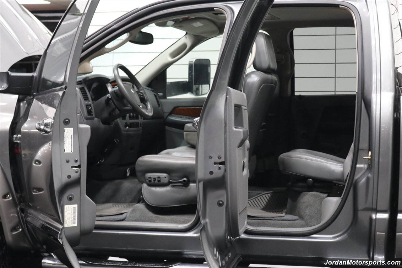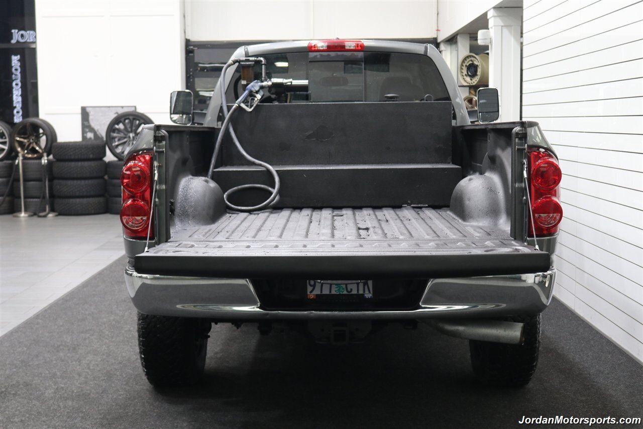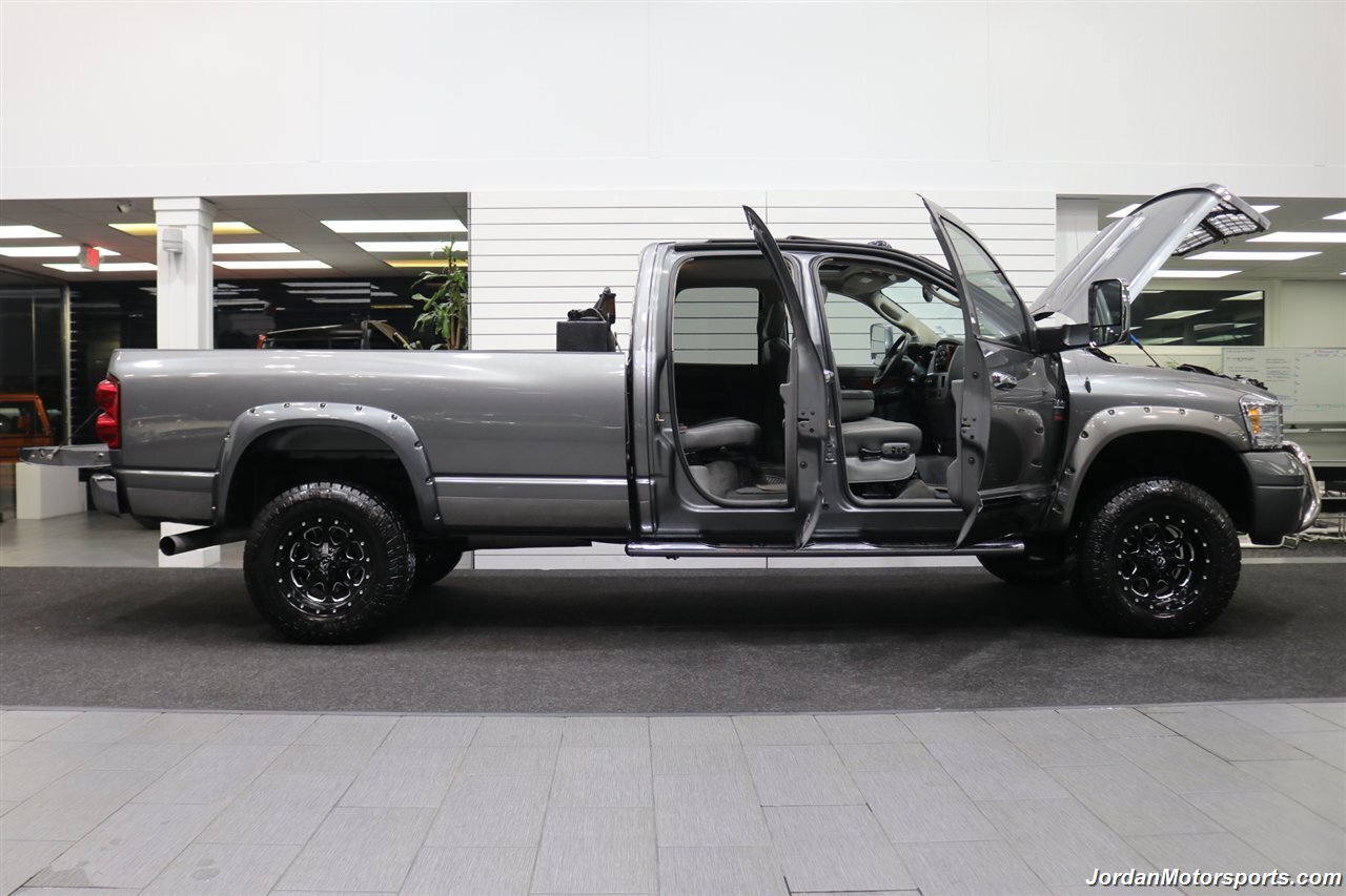 UP FOR GRABS IS A SUPER HARD TO FIND IN THIS SHAPE AND CONDITION AND SUPER LOW MILEAGE ONE OF THE FINAL TURBO CUMMINS 5.9L HIGH OUTPUT TRUCKS THAT ROLLED OFF THE LINE FROM DODGE 2007 DODGE RAM 3500 QUAD CAB LONG BED 4X4 LARAMIE WITH ONLY 98K MILES, LIKE NEW IN AND OUT, NO SIGNS OR RECORDS OF ANY ACCIDENTS OR DAMAGES EVER, NO MAJOR DENTS OR SCRATCHES AT ALL, LIKE NEW INTERIOR FREE OF ANY RIPS OR TEARS OR ANY BROKEN PLASTICS AT ALL, 0-STAINS ON THE CARPET AS WELL. THE UNDER CARRIAGE OF THIS ONE OWNER OREGON TRUCK SINCE NEW IS IN NEW CONDITION AND SHOWS ZERO RUST, NO SIGNS OF EVER BEING DRIVEN IN ANY MUD OR SNOW OR OFF ROAD AT ALL, 0-SURFACE RUST/ 0-TEXTURE. THIS RAM HAS A LOT OF GREAT UPGRADES SUCH AS REAR FIRESTONE LOAD LEVELING AIRBAGS WITH ON BOARD AIR COMPRESSOR, LEVELED ON A NEW SET OF FUEL WHEELS AND 10-PLY ALL TERRAIN TIRES, GOOSENECK IN THE BED, SPRAY IN BED LINER, EXTRA FUEL TANK IN BED, FRONT BULL BAR, LOTS OF CHROME ADD ONS THAT CAN BE REMOVED IF BUYER CHOOSES TO, PAINT MATCHED BUSHWACKER FENDER FLARES AND MORE. THIS IS A LARAMIE MODEL LOADED WITH ALL OPTIONS INCLUDING FULL LEATHER INTERIOR, POWER SEAT, HEATED SEATS, MOON ROOF, POWER REAR SLIDER, TOWING MIRRORS, TRAILER BRAKES, TINTED WINDOWS, 6-PASSENGER SEATING AND MORE. THIS RAM ALSO COMES WITH UPGRADED COLD AIR INTAKE, EDGE TUNER THAT IS C.A.R.B. LEGAL FOR BETTER TOWING OPTIONS AND GAS MILEAGE, UPGRADED LED HEAD LIGHT BULBS AND MORE. YOU CAN RUN UP TO 37" TIRES WITH THIS LEVELING KIT IF YOU CHOOSE TO. THIS RAM COMES WITH ORIGINAL WINDOW STICKER / 2 SETS OF KEYS AND MANUALS.