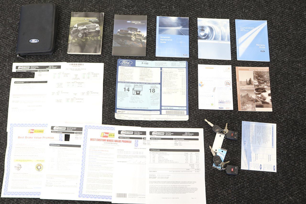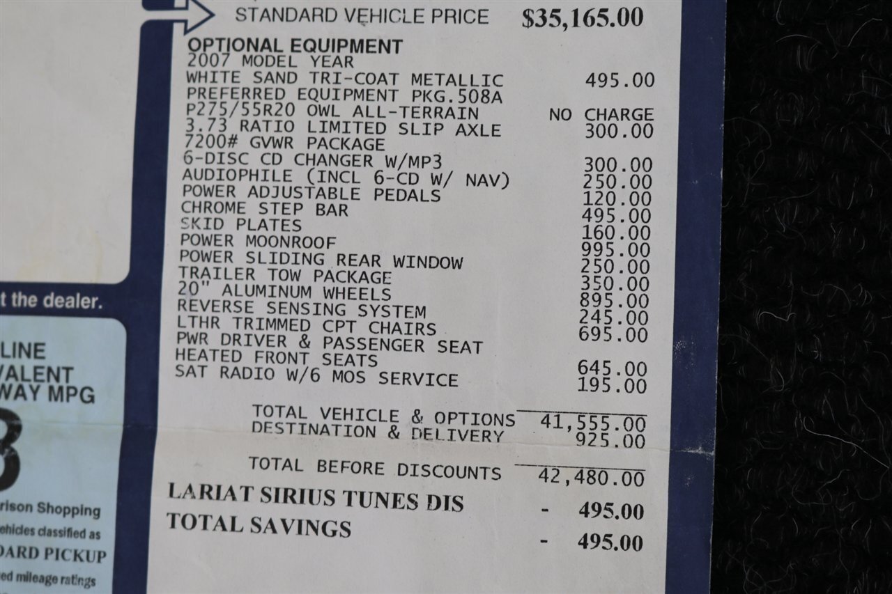 UP FOR GRABS IS A SUPER HARD TO FIND IN THIS SHAPE AND CONDITION AND SUPER LOW MILES FRESH TRADE IN BY THE SECOND OWNER SINCE NEW 2007 FORD F-150 SUPER CREW SHORT BED 4X4 LARIAT WITH 5.4L V-8 , LIKE NEW IN AND OUT, ADULT OWNED, ALWAYS GARAGED, NEVER BEEN OFF ROAD, SUPER CLEAN UNDER CARIAGGE, NO ACCIDENTS, RARE WHITE SAND TRI-COAT METALLIC COLOR WITH BLACK LEATHER INTERIOR, MOON ROOF WITH HEATED SEATS AND ALL OPTIONS. IT IS IMPOSSIBLE TO FIND TRUCKS WITH THIS LOW MILEAGE AND IN THIS SHAPE AND WELL CARED FOR, COMES WITH ALL BOOKS - KEYS - WINDOW STICKER, FRESHLY SERVICED WITH ALL NEW BRAKES - ROTORS - CALIPERS - FLUID FLUSHES - AC SERVICE - PAINT MATCHED CANOPY AND UPGRADED NEW WHEELS AND TIRES SO HURRY AND BE THE LUCKY OWNER OF THIS RARE FIND.