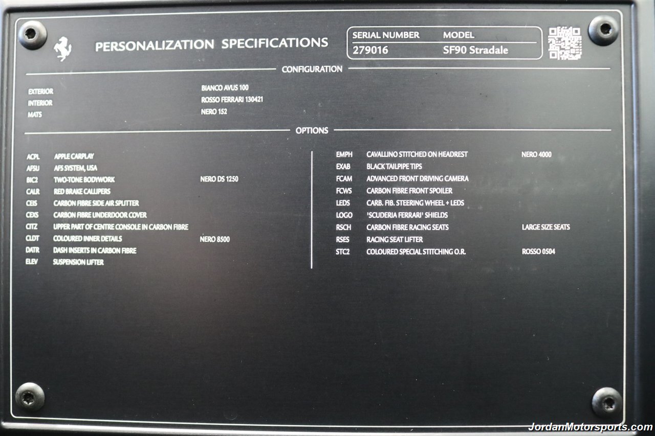 UP FOR GRABS IS A SUPER HARD TO FIND IN THIS SHAPE AND CONDITION AND LOW MILES PERFECT SPEC BUILT BY OUR DEALERSHIP OWNER FOR HIM SELF, ALL THE RIGHT OPTIONS, NEVER DRIVEN IN RAIN, FULL SATIN XPEL SELF HEALING PPF FILM INSTALLED SINCE NEW, FULL NOVITEC EXHAUST AND DOWN PIPES AND LOWERING SPRINGS INSTALLED BY FERRARI DEALER, 22" VELOS DESIGN 3-PIECE WHEELS VXS05 MODEL. THIS SF COMES WITH ALL THE RIGHT OPTIONS INCLUDING AFS SYSTEM AMERICA / RED CALIPERS / CARBON FIBER SIDE AIR SPLITTER / CARBON FIBER SIDE SKIRTS / CARBON FIBER UPPER TUNNEL TRIM / COLOURED INNER DETAILS / CARBON FIBER DASHBOARD INSERTS / SUSPENSION LIFTER / HORSE STITCHED ON HEADREST / BLACK CERAMIC EXHAUST PIPES / CARBON FIBER FRONT SPOILER / CARBON FIBER STEERING WHEEL +LEDS / SCUDERIA FERRARI SHIELDS / CARBON FIBER RACING SEATS IN LARGE SIZE / FACTORY BLACK ROOF / CARBON FIBER PADDLES / RACING SEAT LIFTER / APPLE CARPLAY / BACK UP CAMERA / ADVANCED FRONT DRIVING CAMERA AND MUCH MORE. NO ISSUES NO STORIES NEVER BEEN IN ANY ACCIDENTS OR HAD ANY DAMAGES, ALWAYS SERVICED AT FERRARI DEALER AND GARAGED. OVER $70K IN UPGRADES AND ADDS